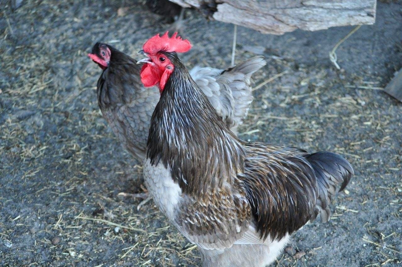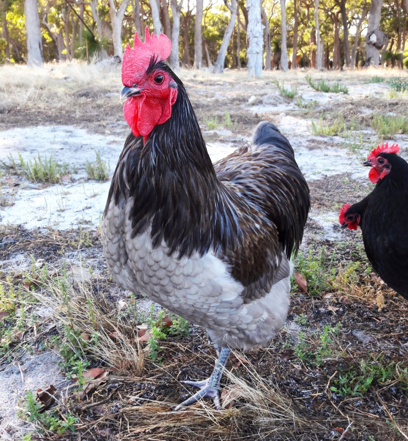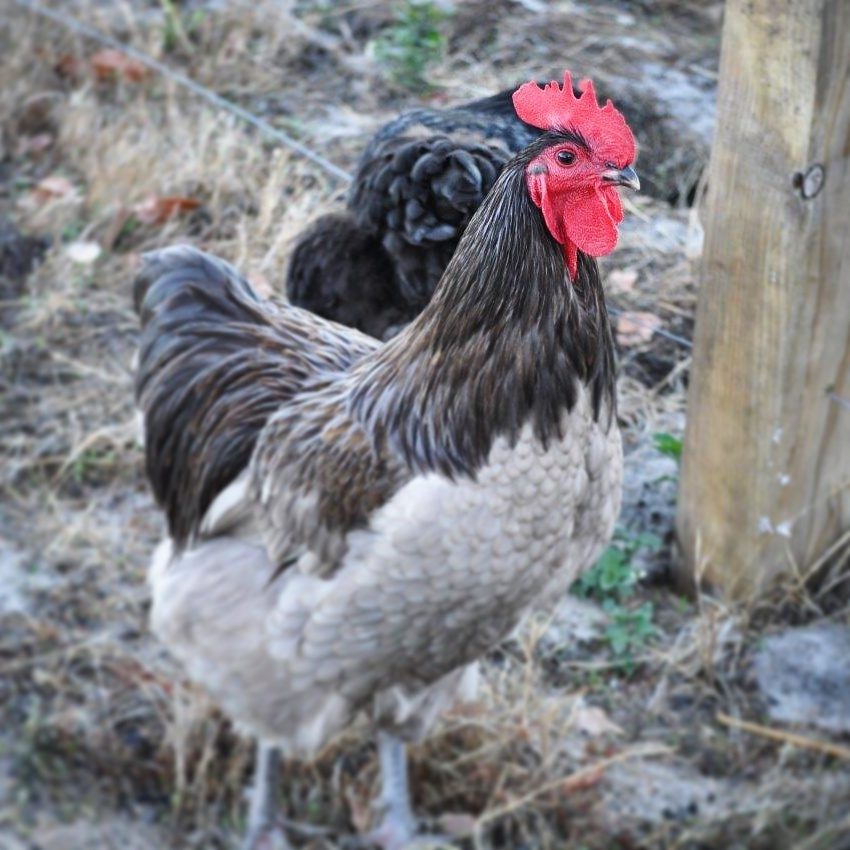 I like your Blue cock birds body confirmation with your countries standards and I agree his comb needs work. I really don't have comb problems except frostbite which is not genetic. Your hen does have a lot of tail in that pic unless it is the wind, for your standard. Do you ever have red leakage or bleaching from the sun with the blue cocks? By the way, what is your first name?