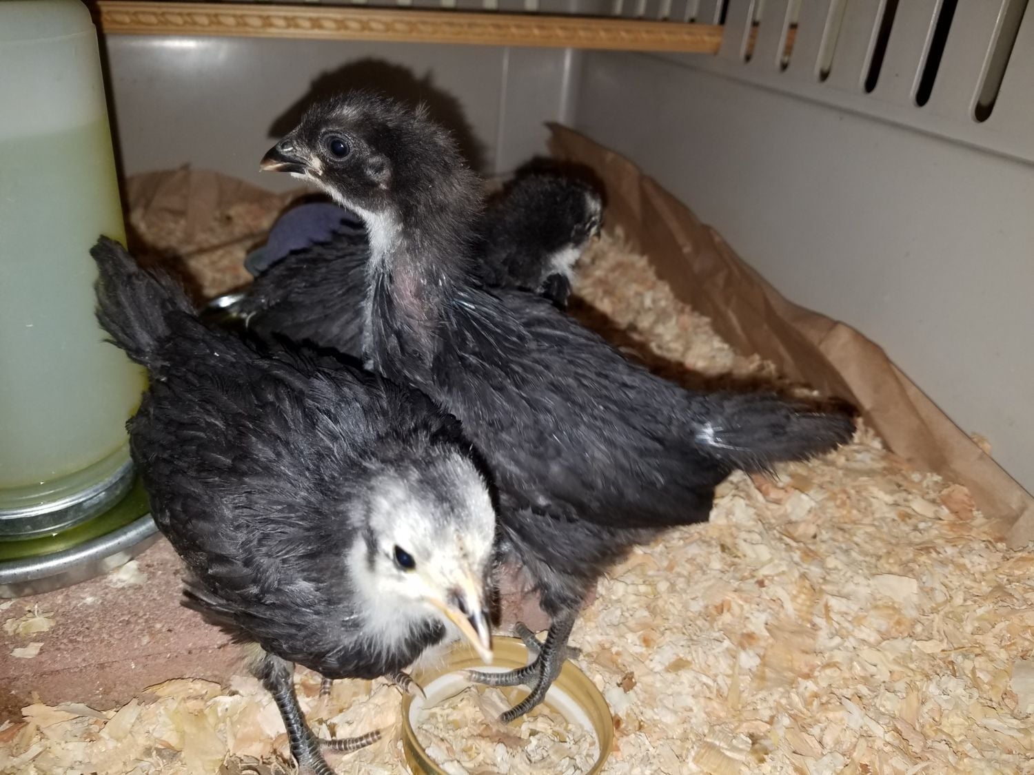My gang of 3 BA chicks, about 4 weeks old. I bought them sexed & am crossing my fingers they are all hens!