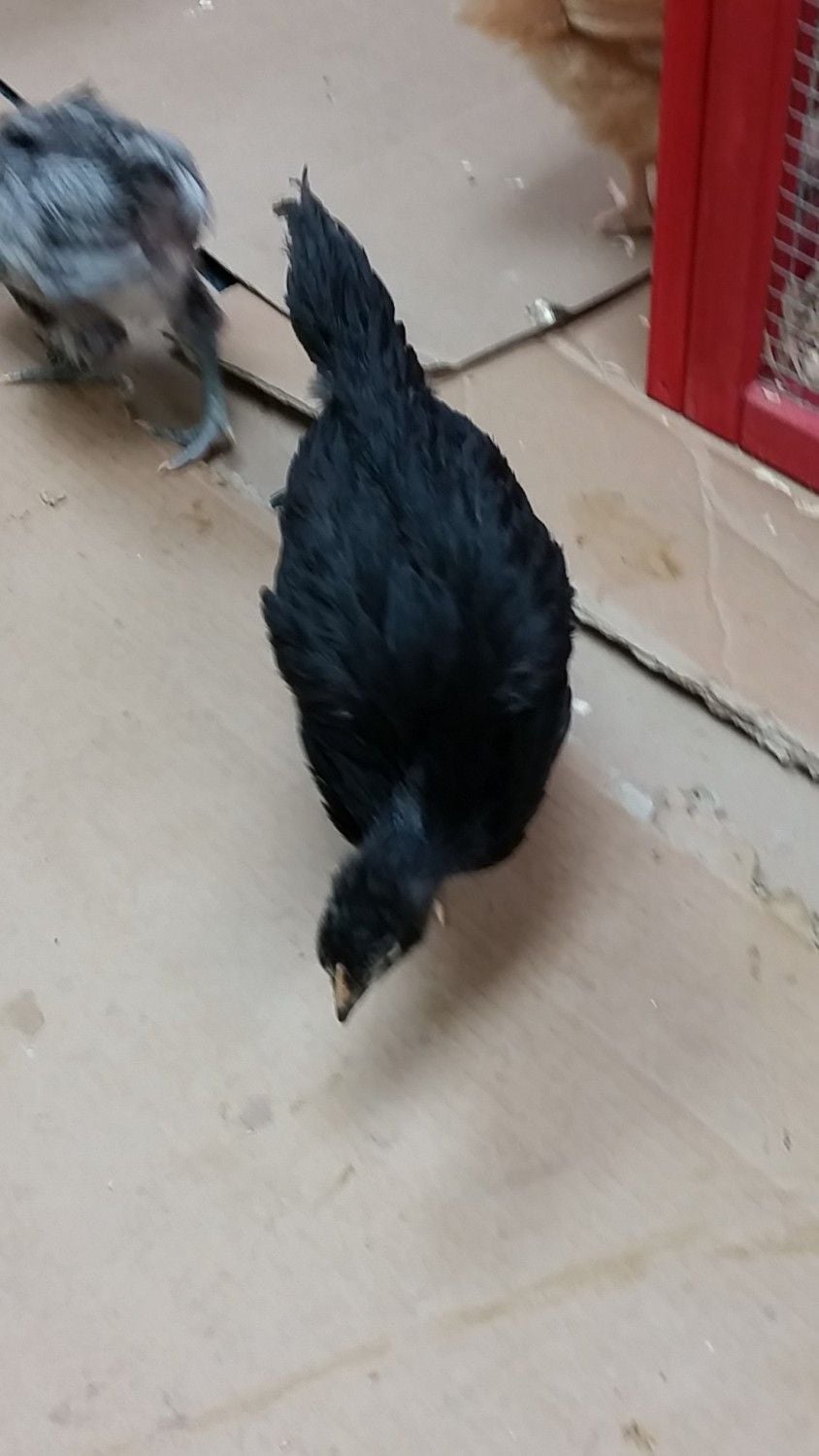 On the plus side, I haven't seen any signs of waddles yet, none of the combs look red (two are yellow-ish, one is black), and all the tails look the same to me, so I'm thinking they are all the same thing, whatever that is! (They can't ALL be roos, right?)