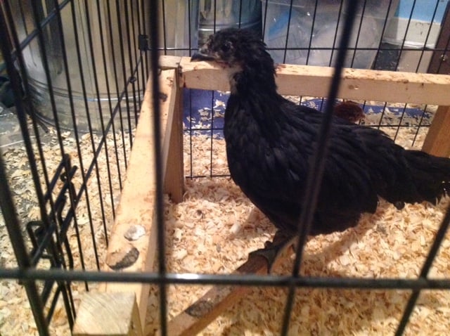 Piper is a huge Caps fan already. I think her body type says pullet, but I am really bad at this. She is kinda snuggly when she is on her own, but the EEs she is with are just whack a doddle.