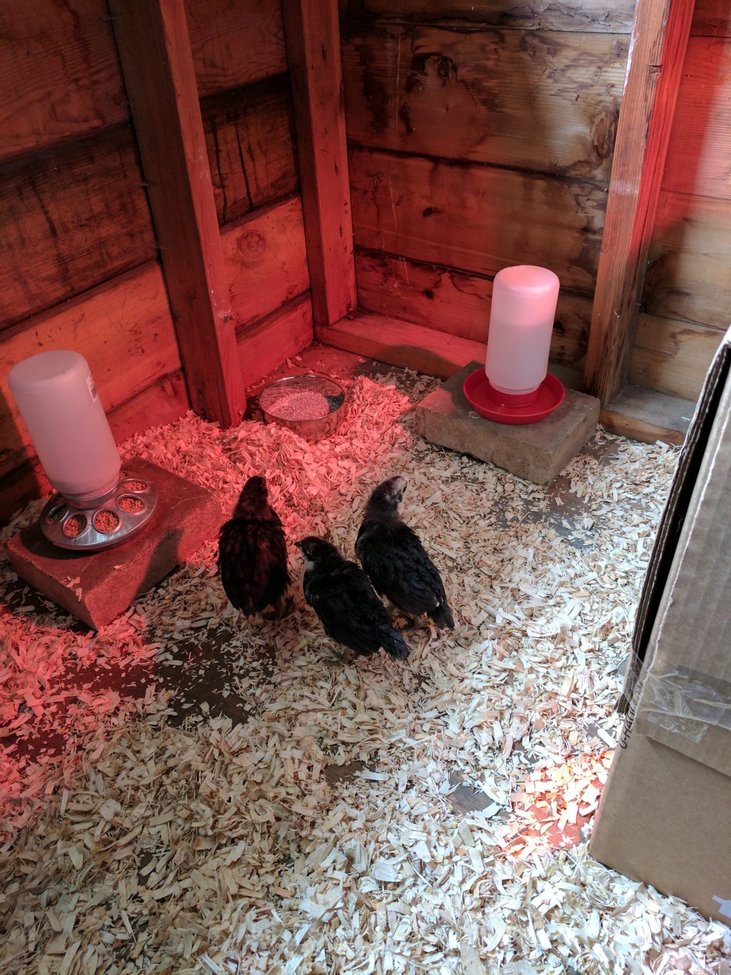 The two larger chicks (Goldie & Tipper) have larger combs than the other, smaller one (Cheeks) but that's about it, and Cheeks might be from a later hatching, so might be a little younger. Who knows?