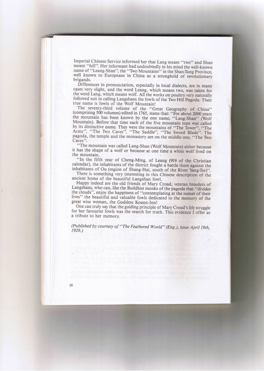 For Aussie nuts only! It seems from pics and observations from the time, that the 'original' Aussies were very similar in conformation to the original Cook Orp. Among other bits and pieces, it seems that what really lifted the laying bar was the addition of these Croad Langshans, which were not, it seems, the same as those available to Cook in England for his original 'recipe'. The buggers sure could lay! It appears that all Aussies are in debt to these 8 original birds.