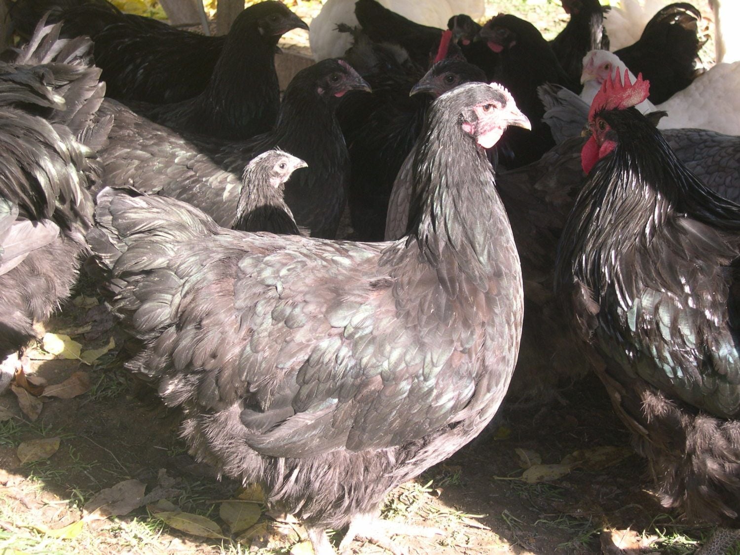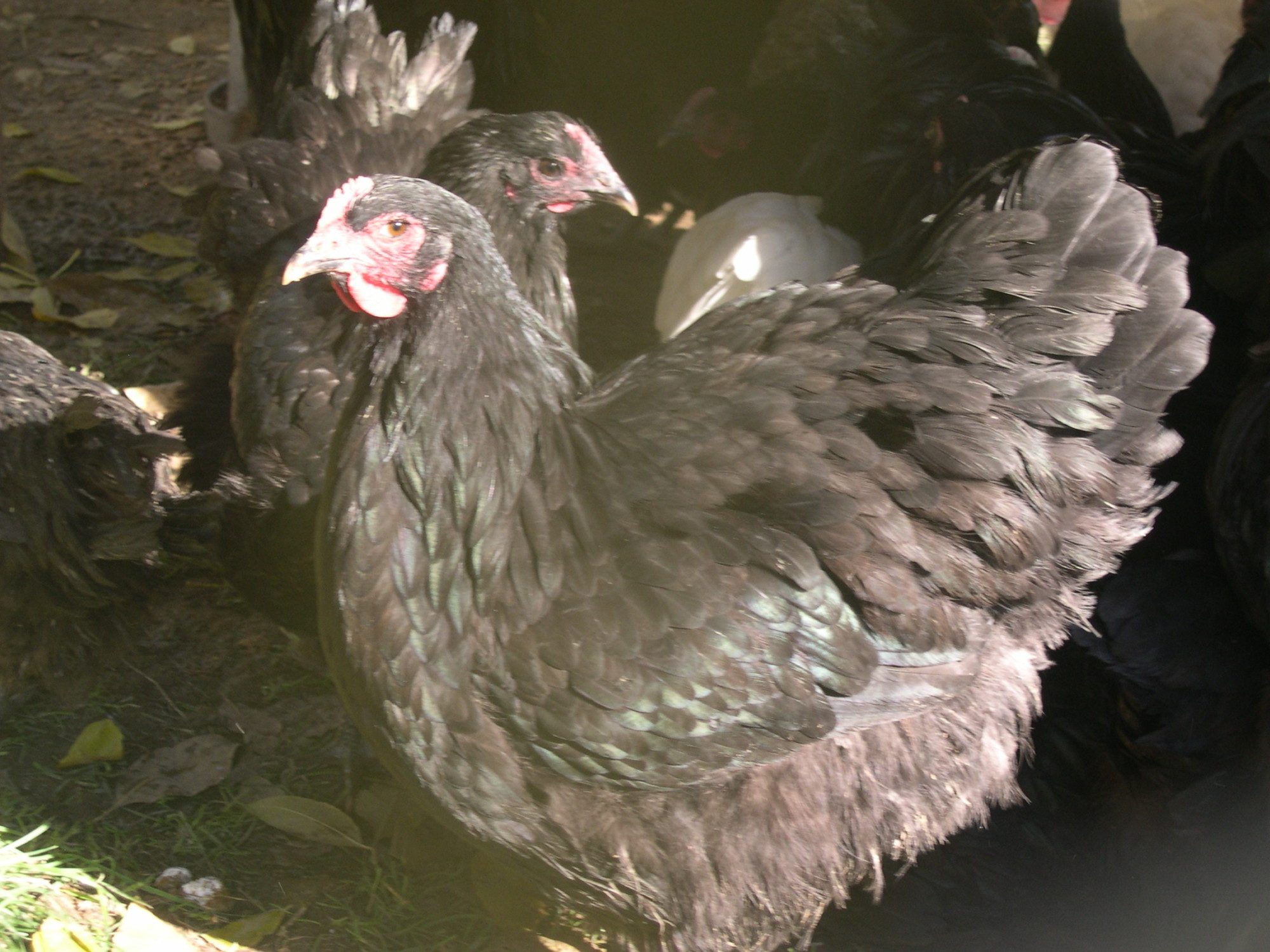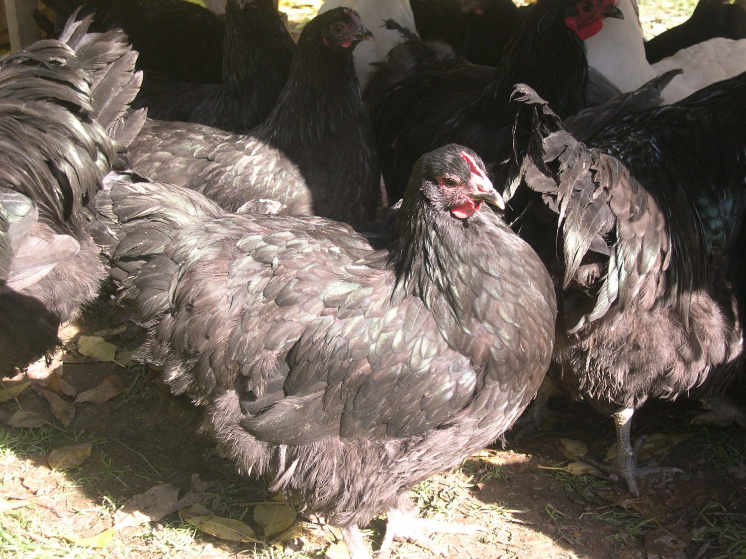 I'm not aware of the Cook Orp. being a particularly poor layer in Australia. I think it may have been more the case that they were poor compared with some of the really good laying breeds which became available eg. Langshans. There was much competition to produce top laying strains at the time and there's no doubt in my mind that various breeders added bits of their own to the mix. As I've said, I think ther's more Leghorn in there than is often credited. But re the Langshan influence, I found the above pics, reproduced in Ray Connor's book, worth a close look. Firstly, with the cocks, you can see why some early commentators suggested that in creating the Australorp, we had, in conformation at least, reproduced the Cook Orp.I think you'll agree there's no major difference. Apart from the 'American' cock. Am I wrong in thinking someone's spraypainted the top half of a Sussex black and stuck it on top of an Australorp? If this is what we sent you to work with, I marvel at the skill of American breeders in producing what you have! I doubt I've seen a worse Aussie back! The girls tell us a bit more. The bottom left 1937 pic shows a coarse bird that, once again appears to be two different breeds stuck together. A good match for ugliness for 'your' cock! The 1940 model is a far more refined bird, but there is strong Langshan imput here. The upright comb and V-shaped tail are strong Langshan features. Our Aussie Standard calls for the comb to follow the outline of the neck. This is starting to happen with the 1943 girl in the middle pic. She's a nice girl who looks similar to, and better than many of our modern birds. The 1950 'American' girl is far too pretty to be with that ugly bugger! Her tail is a bit more 'Langshany' than the Australian bird, but you could breed some nice birds from her.