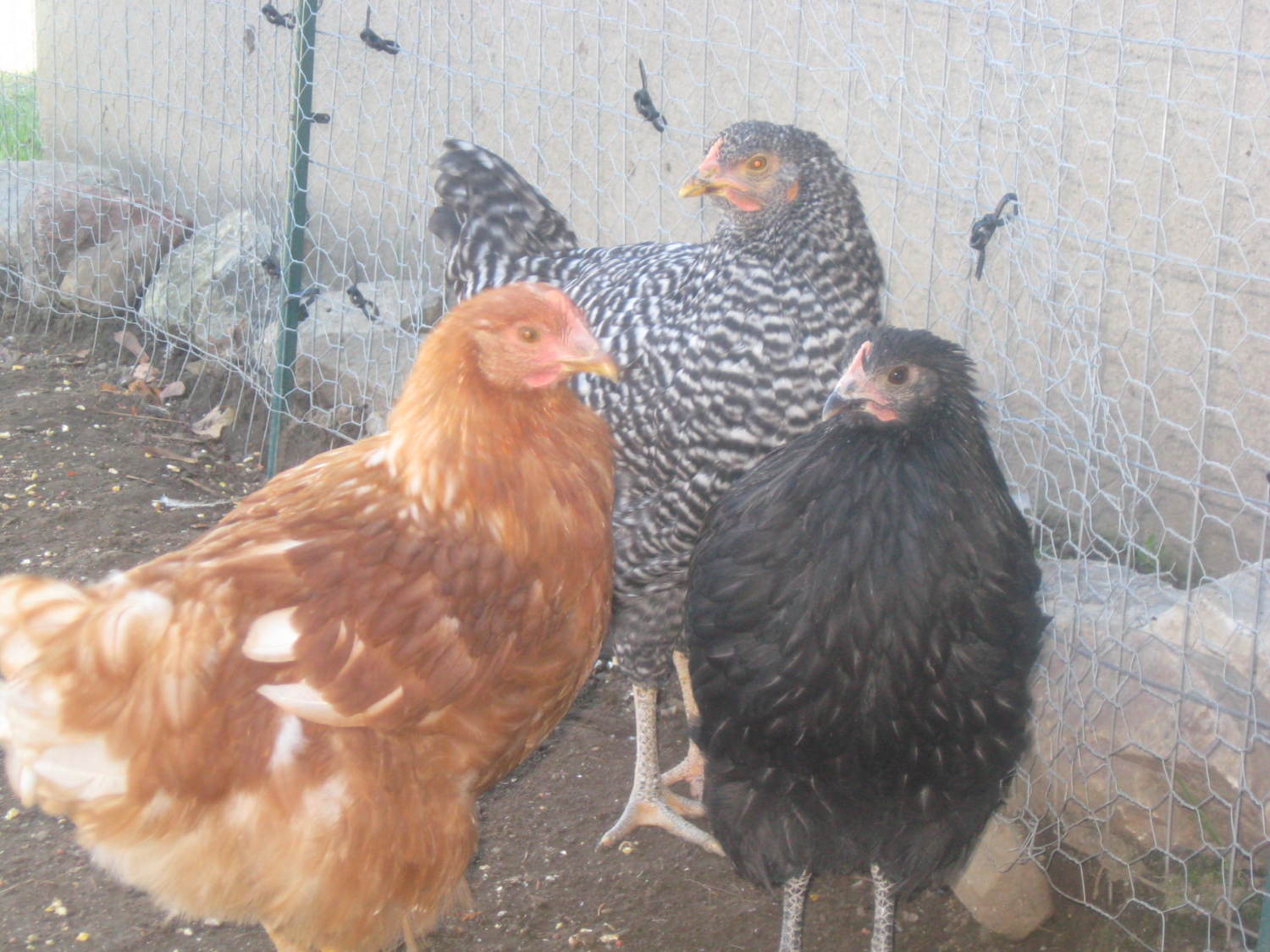 The trio is called "The Big Three" by my older daughter. Not because of size but because they were the surviving 3 out of 4 chicks we got from Meyer Hatchery. We've since added a English Orp who is 3 days younger and a Wyandotte who is 4 months older. But these remain The Big Three. They are pretty bonded but not to the exclusion of the others.Ebony is a cutie. I enjoyed your pics and story about her very much. Nice trio in the last pic. I have a Barr Rock too. She is molting right now and looks very ragged. LOL