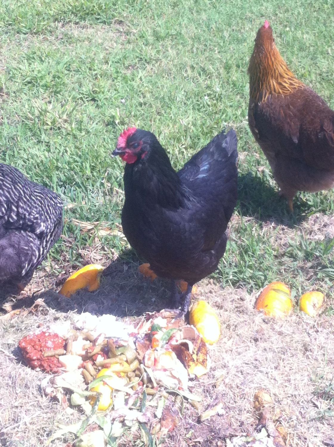 Penny Poo-poo, (EE) in the other hand, is always approaching me in search of something good to eat and because she is top dog chicken! She scans the sky and is always thinking even if I can't discern what.