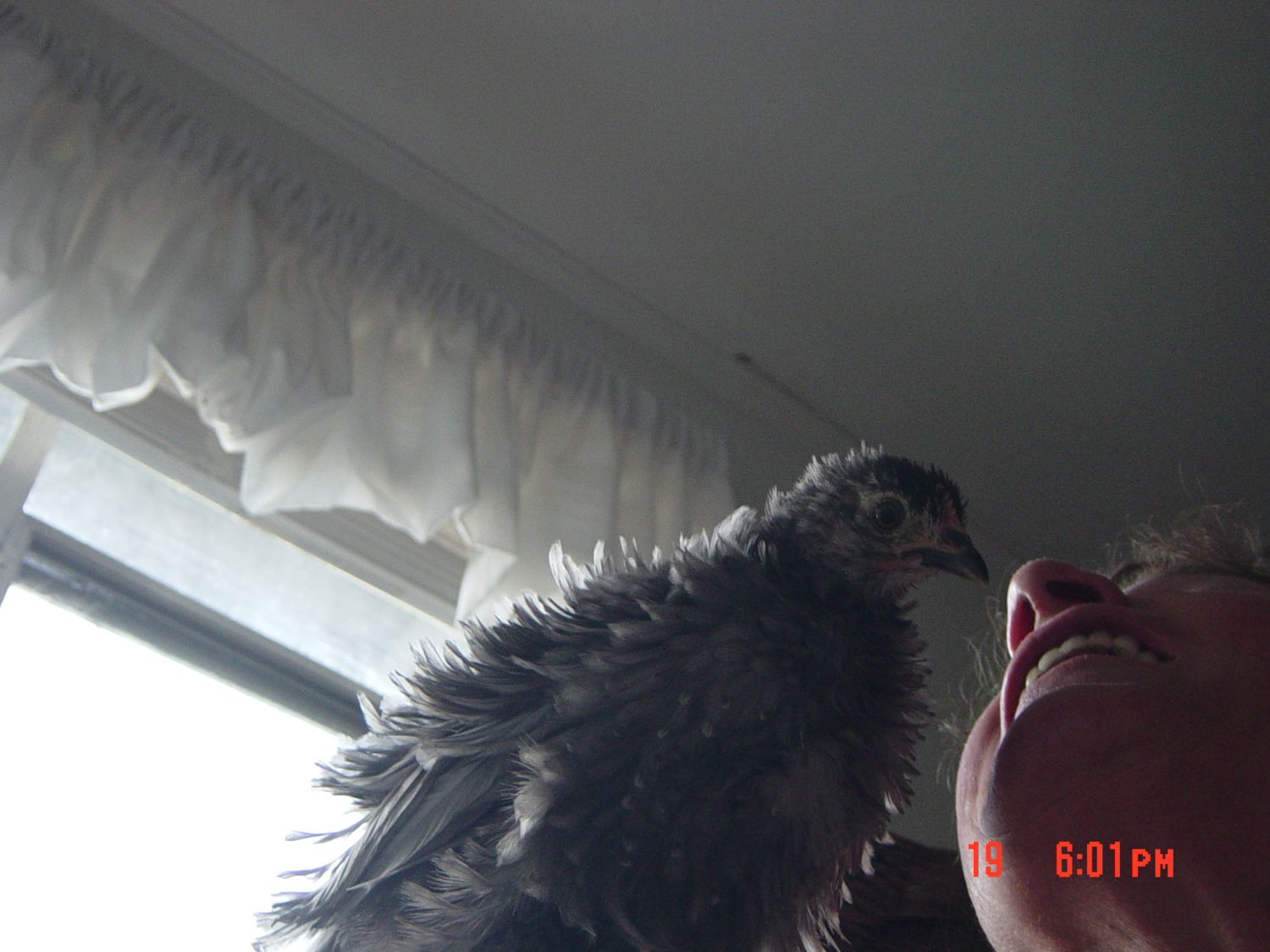 None of my birds are pure. My pics show just two different birds, one is a reflection in a mirror and the last pic is of the gray one alone in an attempt to show its comb. They are about two months and still think both are girls. The frizzle genetics came into my flock on a little australorp baby, the one in the avatar. He is no longer with me as he died a few years ago.JMay,