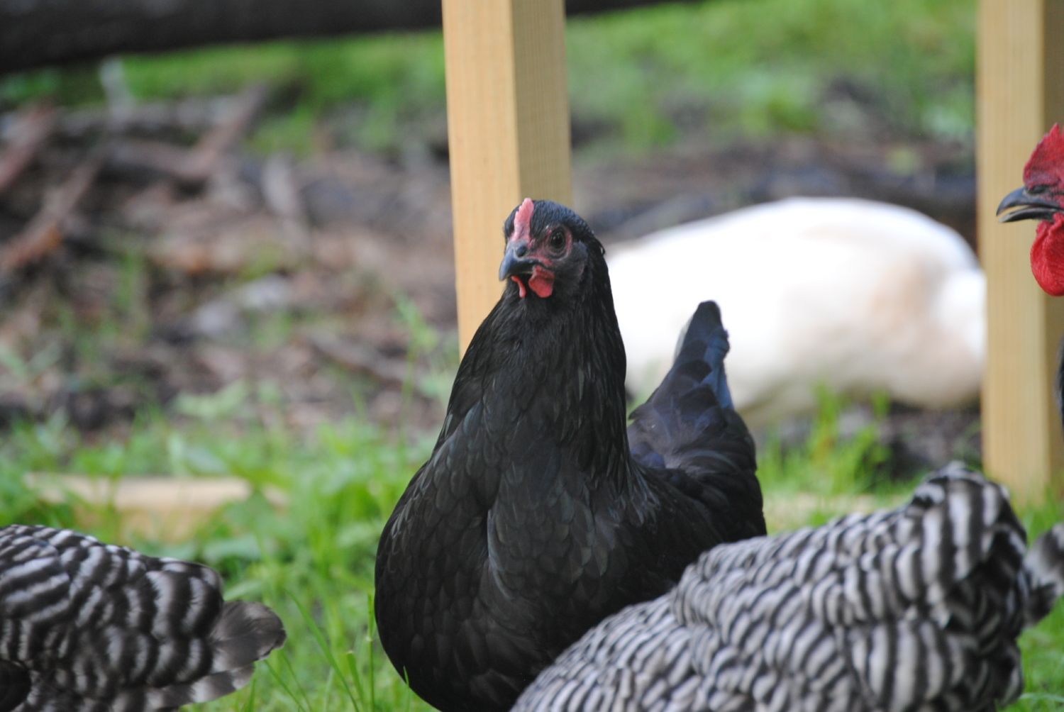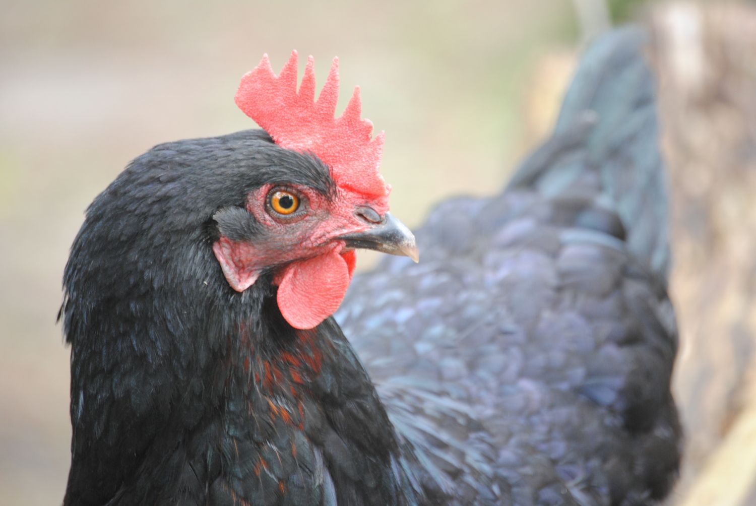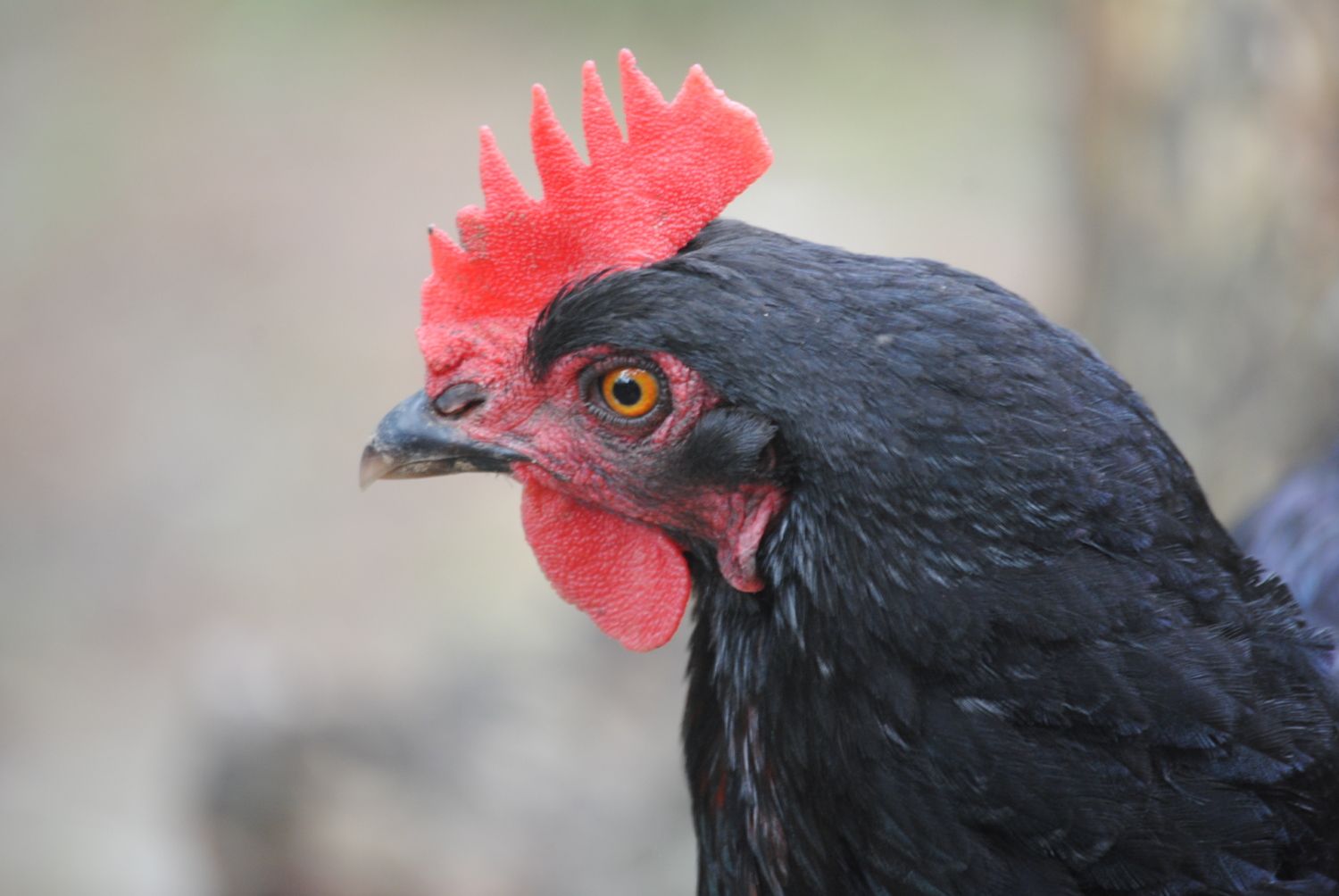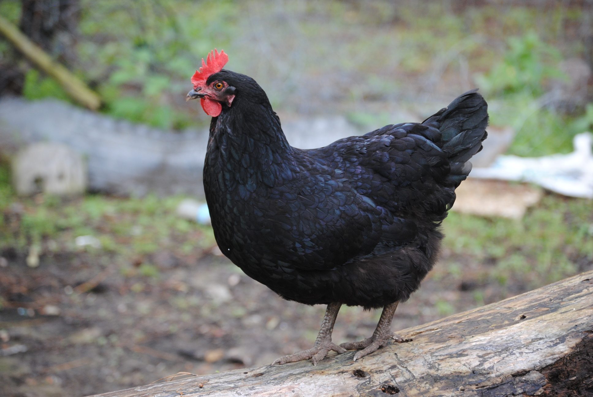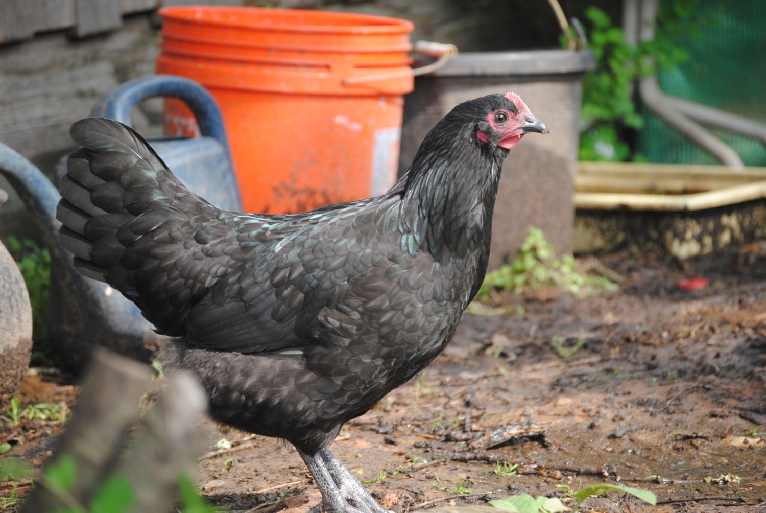 Her eyes are supposed to be almost black but dark brown is accepted, not amber as your pics show. Black Rocks, black sex links and alot of other black birds have amber eyes, but not Black Australorps.The purple sheen, red leakage and amber eye color lead me to believe something is mixed into your hen. The pullet in your pics is very nice looking. I am not trying to offend in anyway just relaying information from the American Poultry Assocs. Standard of Perfection Book in reference to Black Australorps. Below is one of my pullets and a cockerel.
