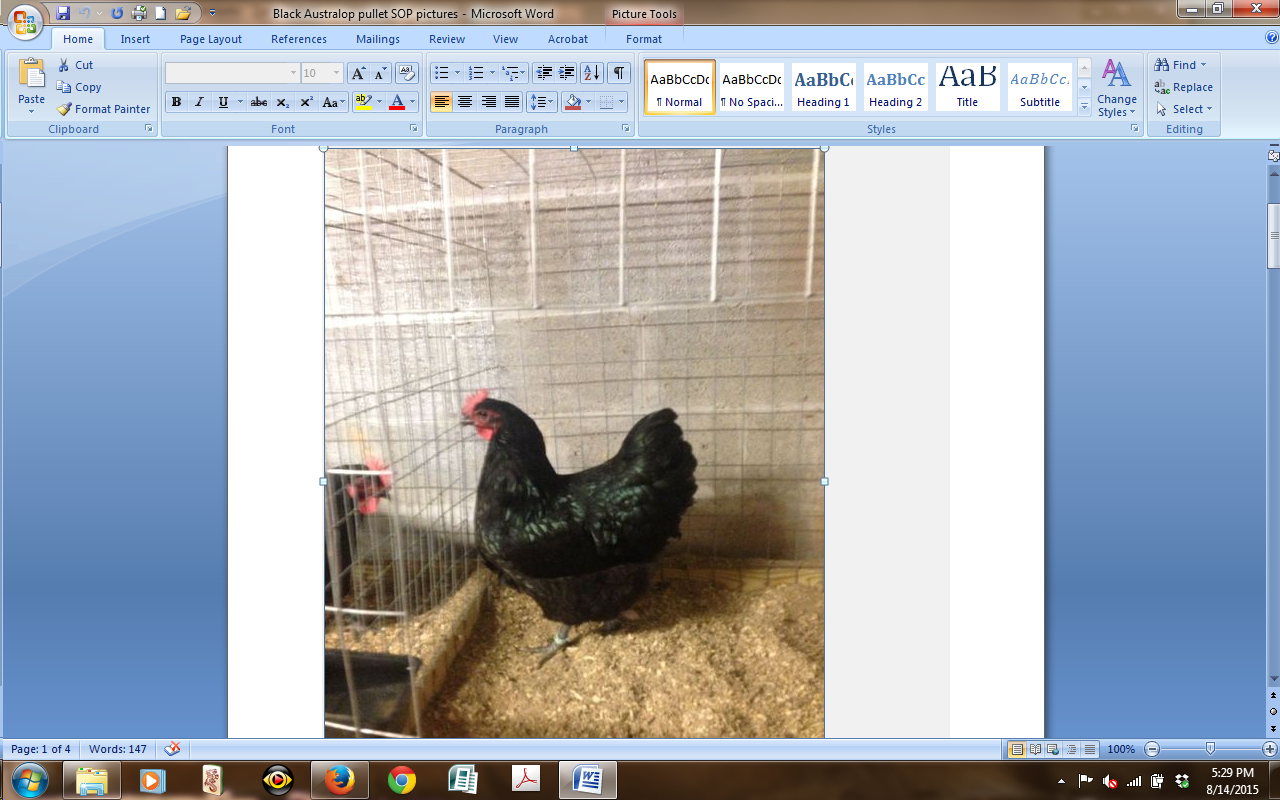 It is hard to tell about shape and you need to get her weight. She should weigh in the 5.5 to 6.5# range. The eyes should be darker and there looks to be a bit of color leakage. The comb looks like it has enough points but is not straight so that would be points off.I was Sold Two Chicks and The feed Store had Black Australorps and Black Copper Marans And They Gave us the Australorps Instead of the marans, like we asked for, But I couldn't be happier with the Girls I got from them! One has since Passed away, But the other is alive and well. I know she is A hatchery Chick But I just Want to know What you think about her Quality Wise?![]()