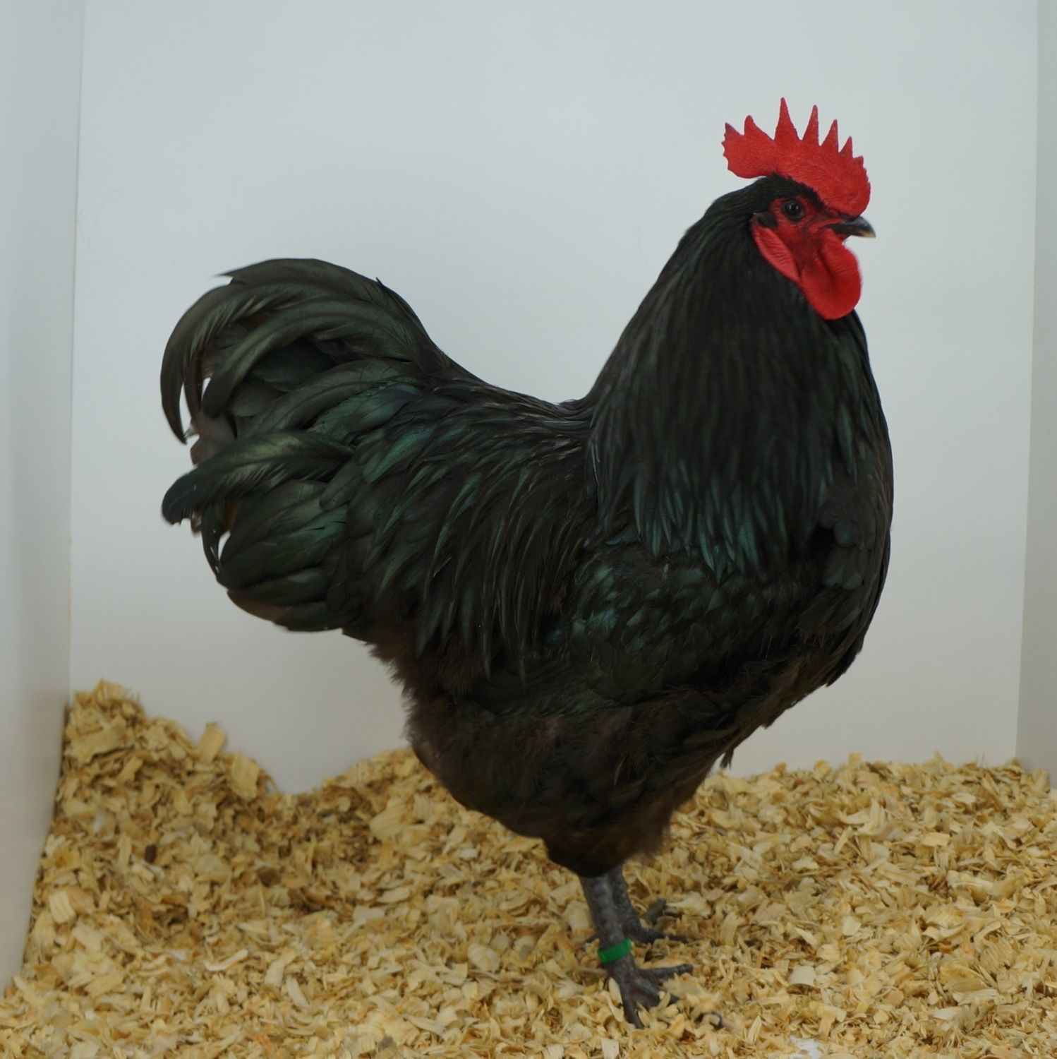 I hatched probably about 100 Australorps this year. Had great success last year showing the father to all these young ones. Here is a picture of him.
