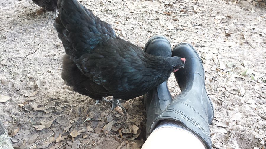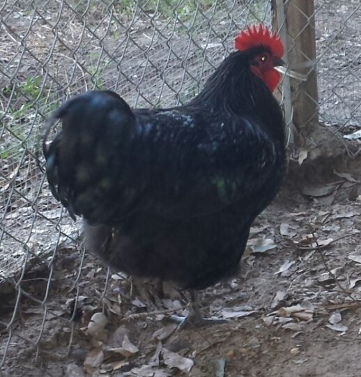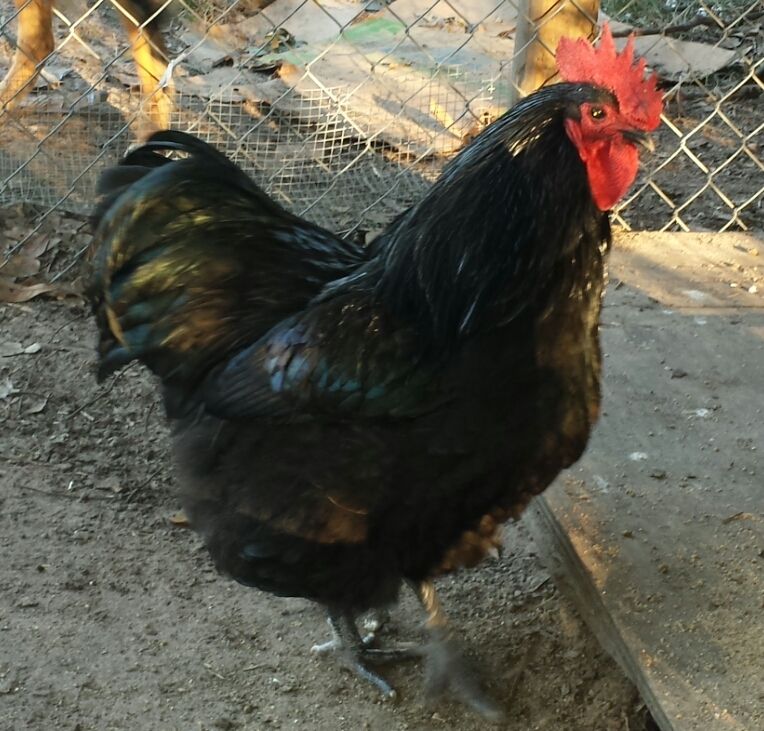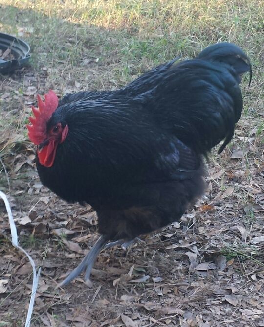 Here are some pictures. I don't have as many of Big Mama, but I'm breeding her to Big Papa for her comb and carriage (Little Mama's comb is more tightly serrated - may breed to see if I can even it out in her offspring). This mama has beautiful lines, I feel. They both have the slate blue/gray legs and well-defined points to their combs, sweeping backs, nice red wattles, and that gorgeous green sheen.