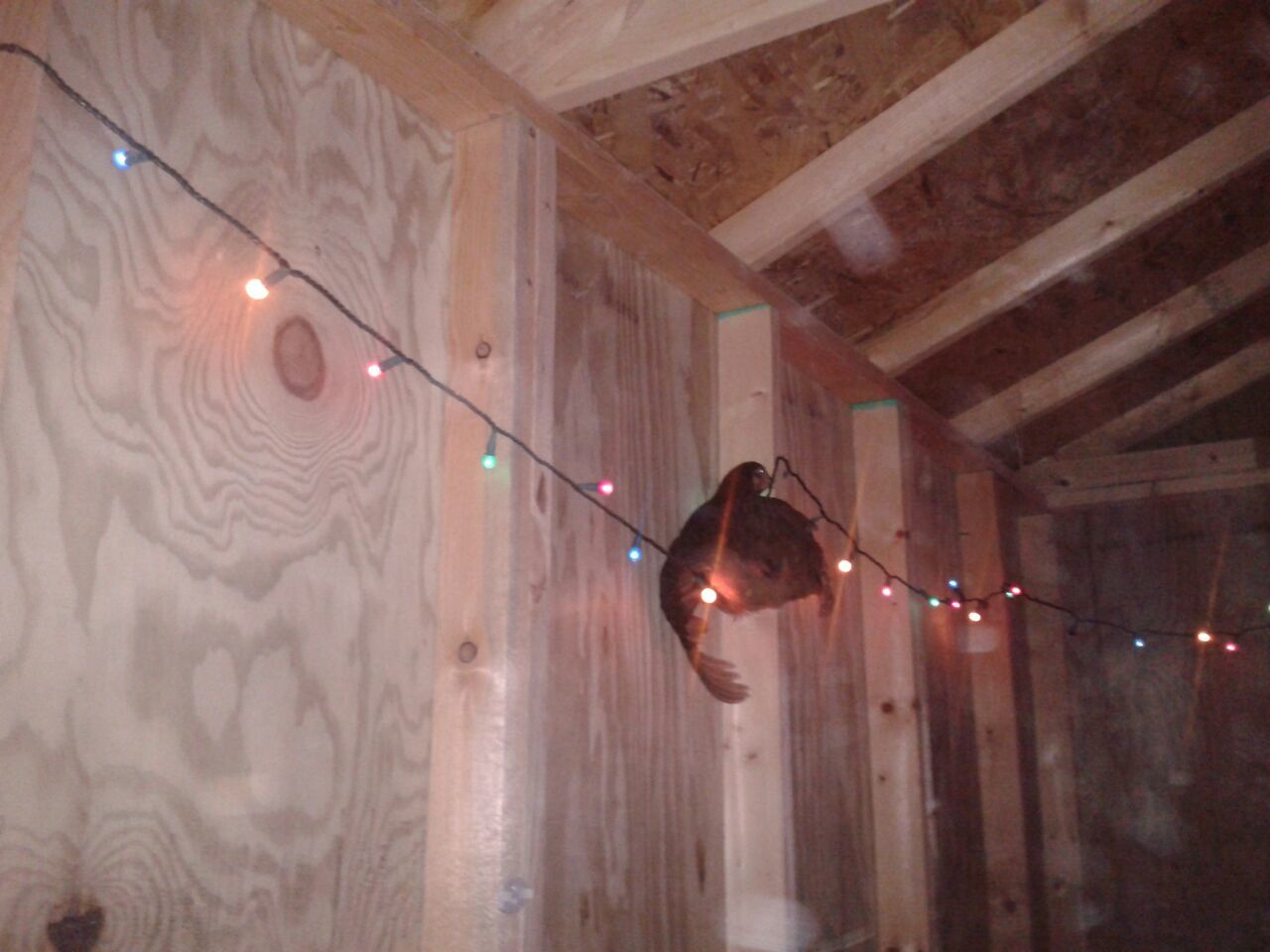 I have all the wires tacked up high and close to the walls to keep them away from the chickens. Hopefully, they won't start getting all creative on me. I'd like to think that this is the final solution. LOL