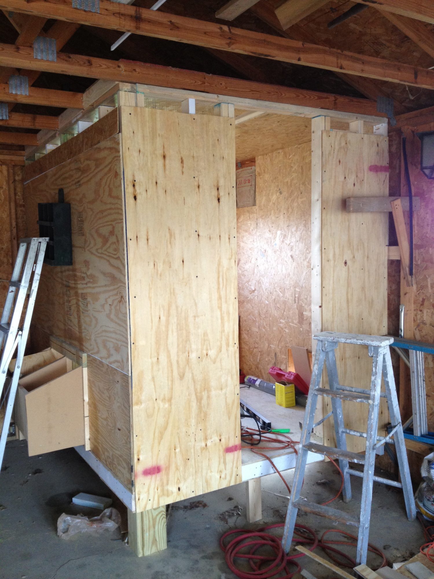 Here's the progress of my coop so far. There's a window inside and the door will have a window that opens. Also hardware wire along the top vents. It's about 6' x 8' with their opening to a dog run that is cement. But I plan on somehow making an extension to a dirt and grassy area.