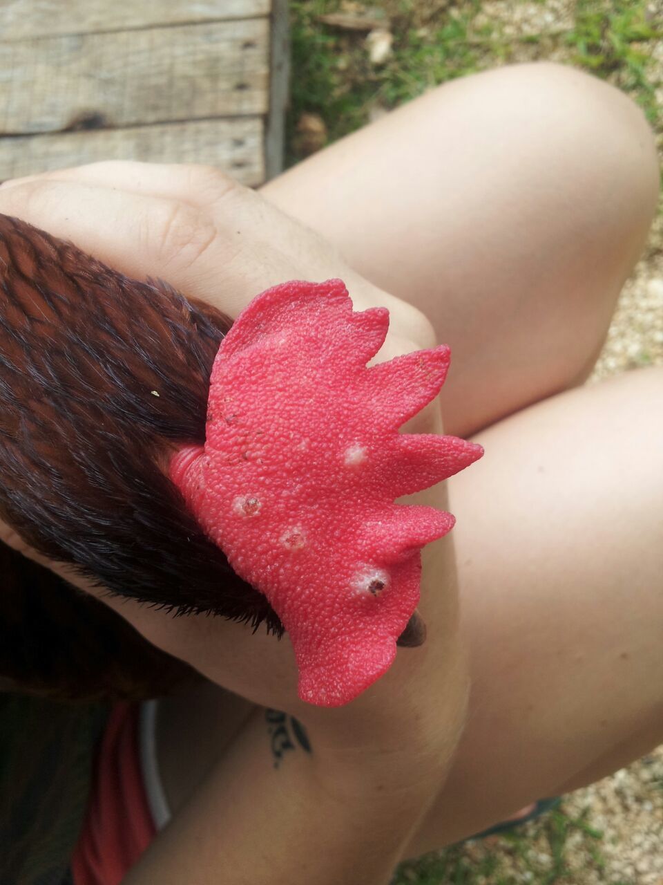 Just have three chickens, and my female RIR is pictured here. She seems fine, but was a bit easier to catch today than normal. Hoping she just gave in quickly and isn't feeling lethargic. My other hen and rooster seem okay, but will check them tomorrow.