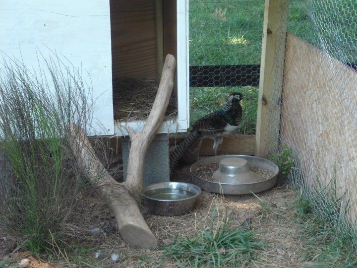 I have made 2 aviaries but I would like to have some input from other people on how to efficiently use all of the space. The pictures I am showing are rather old but they basically look just like these pictures still. Both aviaries are the same size. 10 feet tall, 10 feet wide, and 16 feet long. The first 6 feet of fencing around the aviary is chicken wire and the other 4 feet and ceiling is aviary mesh fencing. I have been looking for other aviaries to see what king of plants, roosts, and other things they added but the only things I can find are the + $1000 aviaries or fancy zoo ones with ponds and water falls in them. I have 2 adult lady amherst pheasants in the right aviary (with some young peafowl being temperary residents) and in the left aviary I have 3 adult lady amherst pheasants and 4 coturnix quail. They have plenty of space but I want to use more of the vertical space. Any ideas? Are there any small trees I can plant that they and perch in and give them shade? Please help!