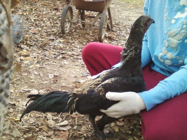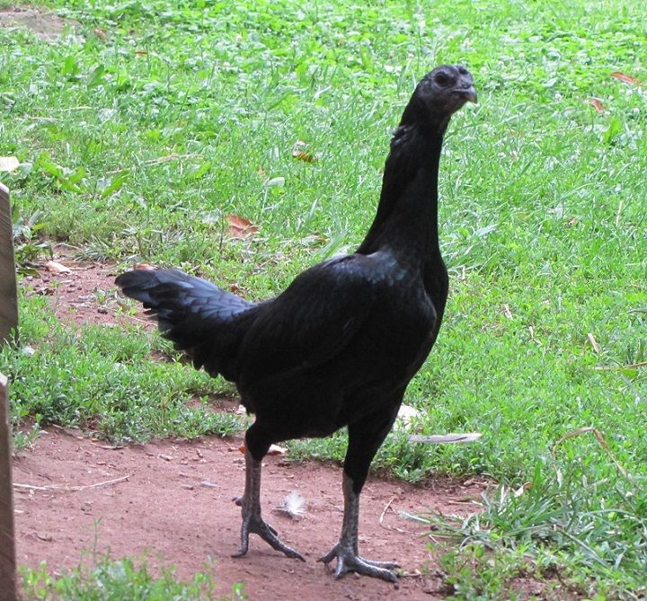 yes, fibro is dominate, so even if 1 parent just has it, the chicks will all get a single copy. They wont be as dark as double dosed birds, but when you breed then to a fibro bird again, the chicks that time will be nice and dark.This hen when mated to a non black skin rooster, produced young with black skin and bones. As you can see if you look closely, there are some orange-ish feathers on her throat. I really don't know what her breed is, as I got her at an auction. She is 1 year old in these pictures. She is without question the dominant hen in the pen.