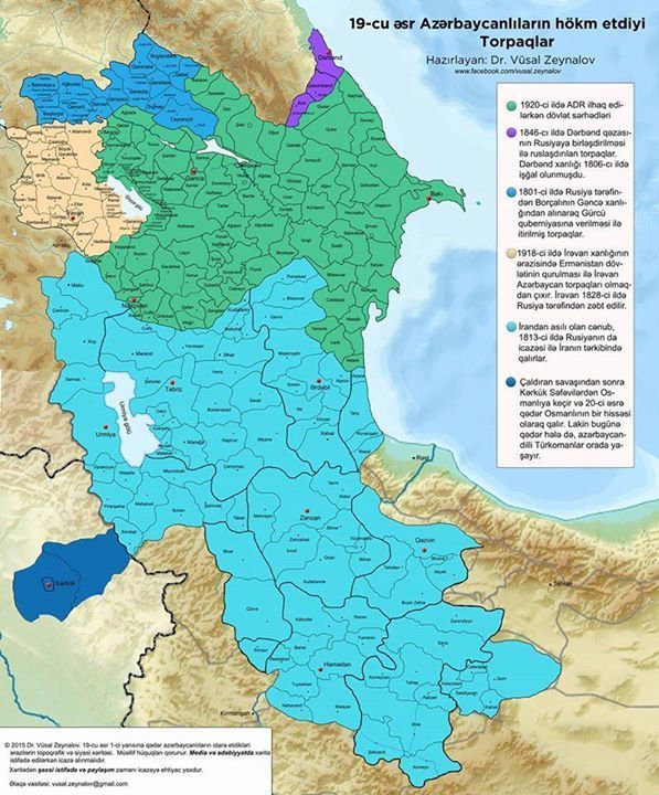 According to a modern etymology, the name of Azerbaijan derives from that of Atropates, satrapunder the Achaemenid Empire, who was later reinstated as the satrap of Media under Alexander the Great The original etymology of this name is thought to have its roots in the once-dominant Zoroastrianism. In the Avesta,Atropatene."[40] The name "Atropates" itself is the Greek transliteration of an Old Median, compounded name with the meaning "Protected by the (Holy) Fire" or "The Land of the (Holy) Fire". In 1918, the government of Musavat adopted the name "Azerbaijan" for the newly established Azerbaijan Democratic Republic, which was proclaimed on 27 May 1918 .Prior to the Russo -Gajar Turks wars of the 19th century, the Azerbaijani people were distributed throughout the north-westernGajar Empire, with the highest concentrations in Gajar provinces that correspond to contemporary Iranian Azerbaijan and the Republic of Azerbaijan. Following military defeats at the hands of the Russian Empire, Qajar Persiaceded all of its territories in the North Caucasus and Transcaucasia to Russia via the Treaty of Gulistan of 1813 and theTreaty of Turkmenchay of 1828. Since then the Azerbaijani people have been partitioned between nations The territories south of the Aras River, which comprised the region historically known as Azerbaijan.