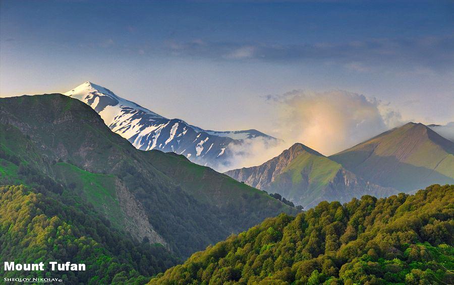 the Talysh Mountains, together covering approximately 40% of the country The highest peak of Azerbaijan is mount Savalan (4811m) a Bazardüzü (4,466 m), while the lowest point lies in the Caspian Sea (−28 m). Nearly half of all the mud volcanoes on Earth are