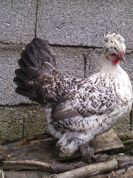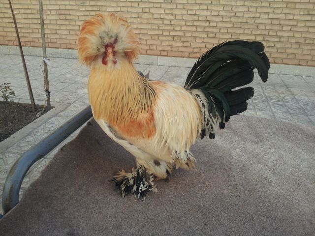 well since I don't think most of these would breed true to color, most don't look like they have the 5th toe and the varying comb types. I guess you mix a sultan with a colored bird (I would use a polish of your color choice).