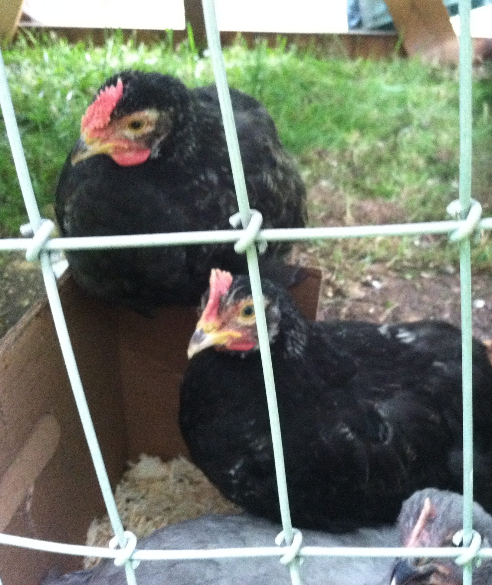 well, my dorking babies typically start out super sweet, then go outside, where they are penned (and sometimes a bit crowded) and turn semi-schizoid, but as soon as i let them start ranging they all typically turn into puppydogs. i go outside, the youngest run up to me, and as soon as i stand still, they're crawling all over my boots, looking for tidbits of food that might be hiding in my laces. LOL