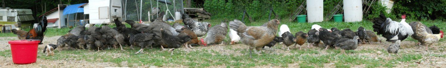 when it's feeding time, it looks like this... i pasted about 6 photos together, so yeah some of the weeds and water tanks are duplicated. LOL but the birds are all there. i did a sports stream capture about 1 photo a second for the whole flock and just pivoted, but not everyone stood still so i had to do a bit of creative editing. (nobody is duplicated tho!) the only one missing is the big guy, who was inside with pneumonia but has recovered since. click on the image for the full version. it's kinda crammed as a thumbnail.