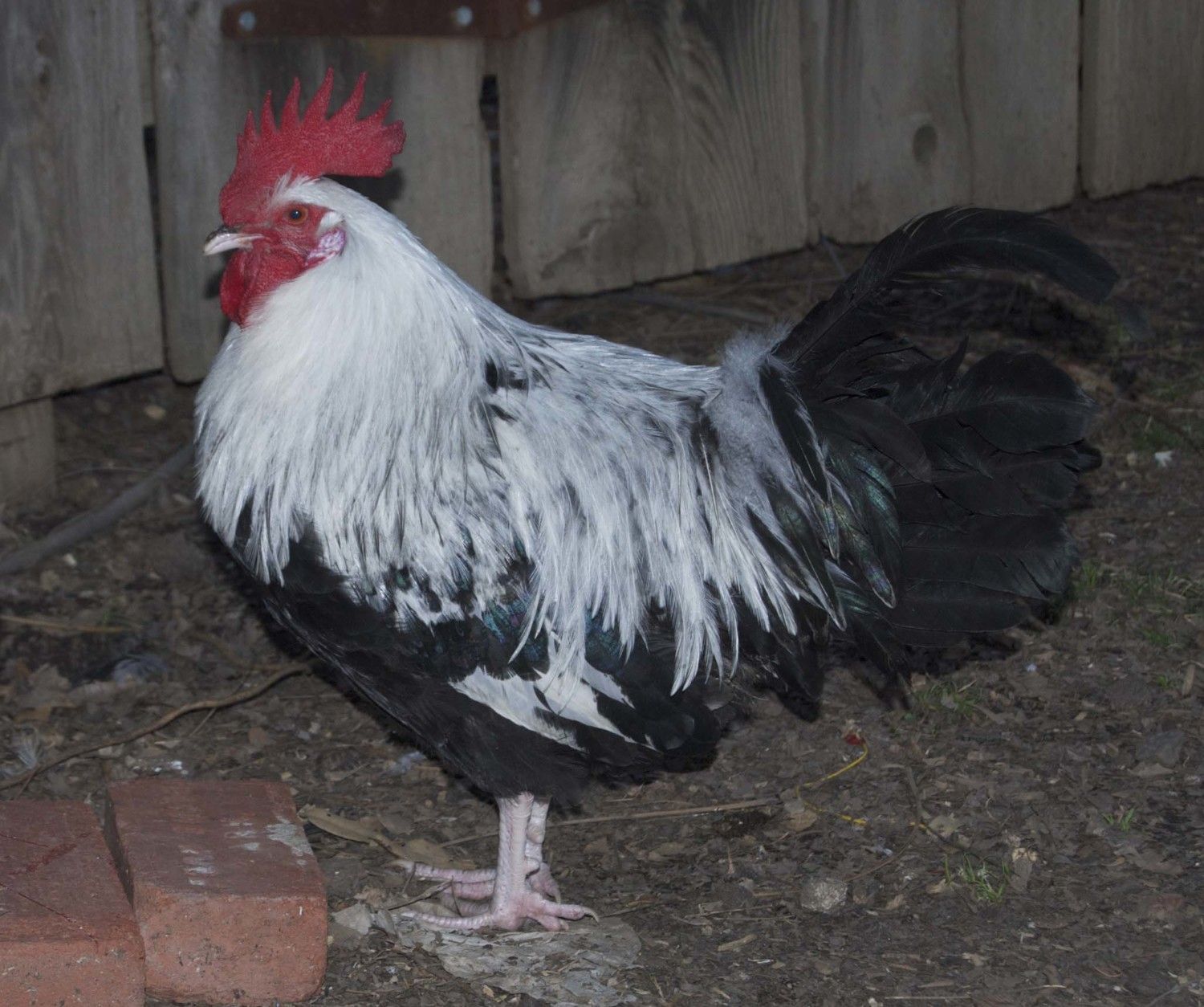 OK, my new pair has finally outgrown the damage done by their previous caretaker. How do they look? I couldn't get Deb to hold still for a full-body shot, but she does have nice carriage, a brick-shaped body, and stumpy little clean legs with 5 full toes one both feet. She started laying two weeks ago, and napoleon has been crowing for about a month now.