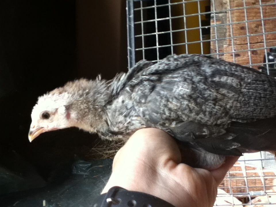 As for the crooked toe, I wish I could say for sure whether it was there as a chick or not... I did check toes when they arrived as hatchlings, and I didn't note any problems, but it's not as noticeable when you pick them up compared to when they're standing on the ground... we handle these chicks on a daily basis, so I'm thinking I would have noticed if it was present earlier, they were probably 4 weeks old when I noticed it somewhat suddenly... There was also the few days I took the girls to the beach and my husband was manning the farm, he was moving the brooder coop and said that he accidentally set it down on someone's leg/foot ever so briefly, checked on them afterwards and said they looked fine, but of course when he got around to telling me about it, he couldn't remember which breed of chick it was. So there's a fairly decent chance that it was an injury, but I can't be certain, so he'll be put with the meat birds when old enough. Leaves me with 4 more cockerels to pick from if I decide to pursue the silver grays... not sure about that yet! Thanks again!
