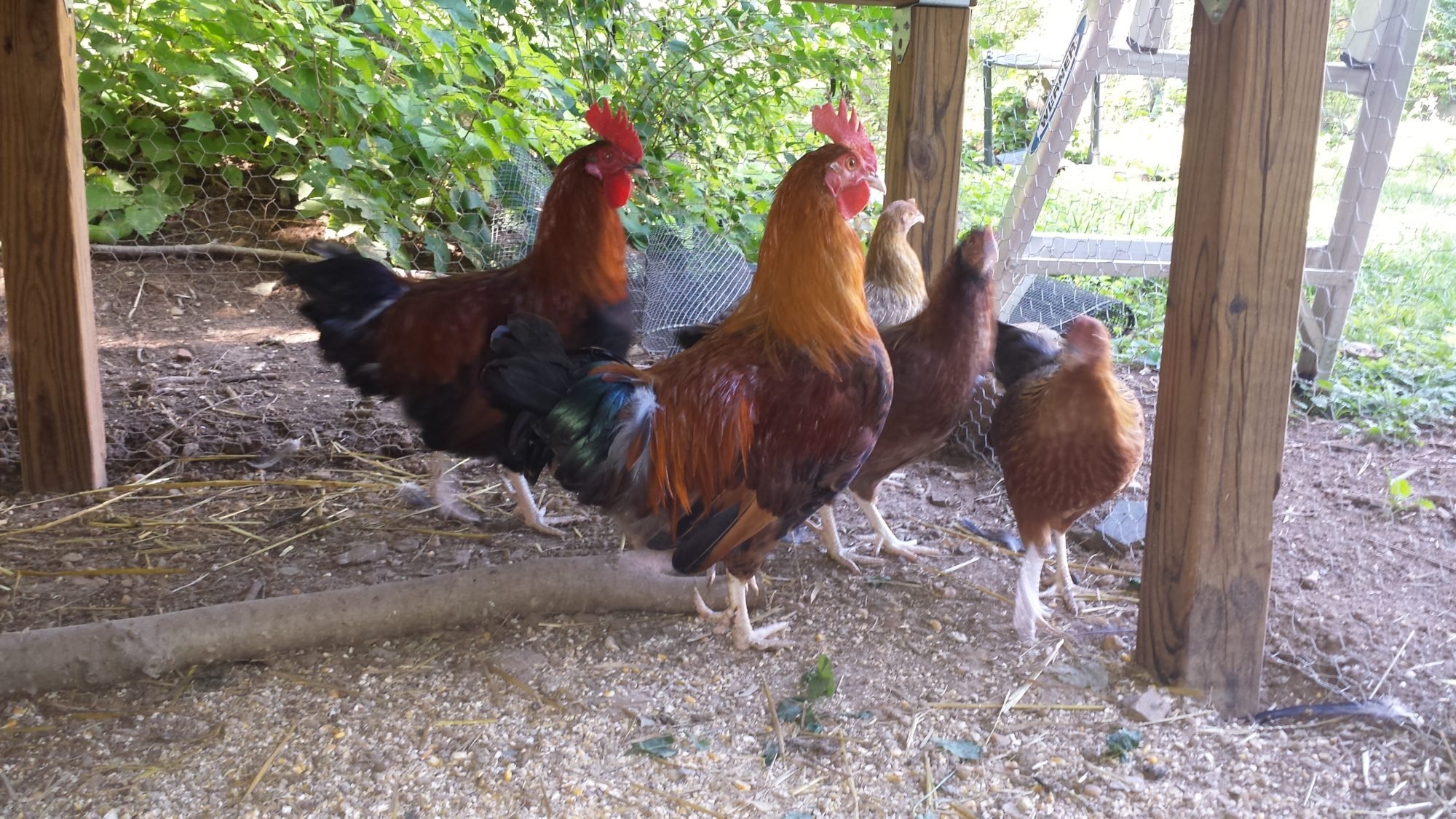 I got some red Dorkings at the beginning of June and they are about 19 weeks old now. I'm mostly new to chickens, although we did have some a few years ago for about a year and a half. I'm really happy with our birds (3 hens and 2 roos) and every day seems like something new as I watch them mature.