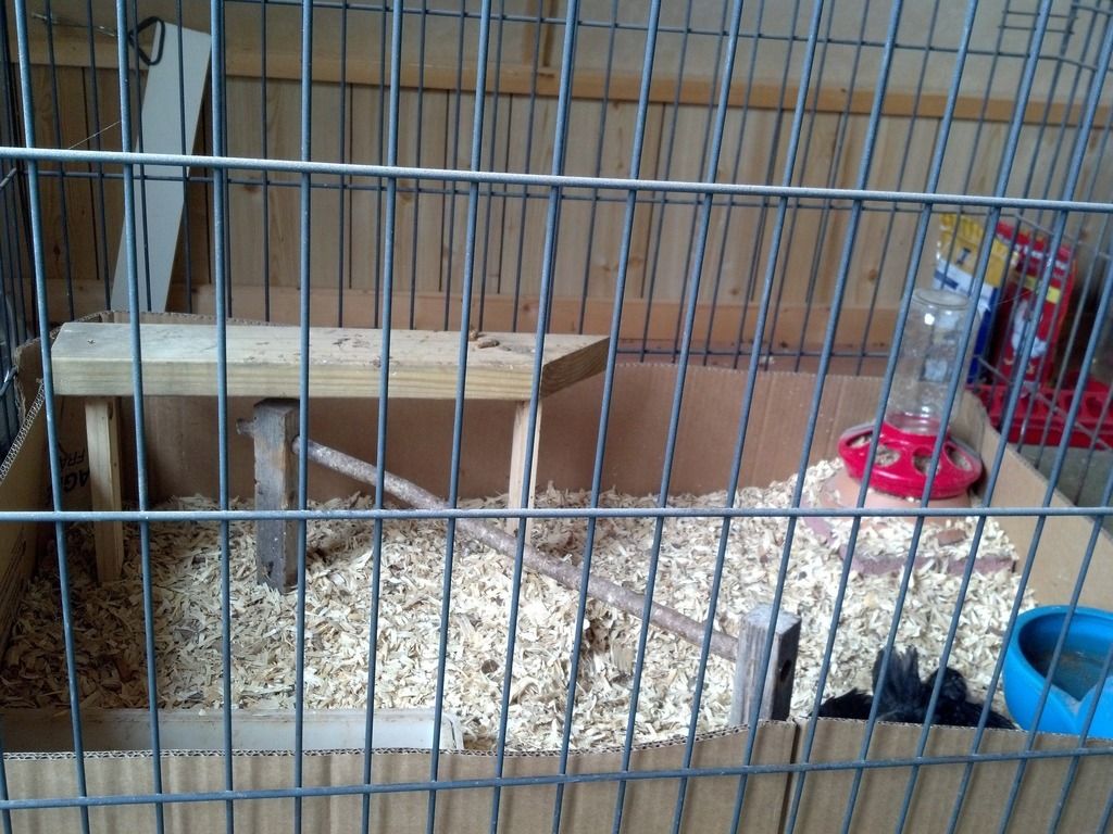 Mine are in our spare bath tub. I have three that are now 5 weeks old. At first I used newspaper to line the tub with paper towels on top to make it non-slip and would just roll up the paper towels and switch it out. Now I am using puppy training pads and it is so much easier. They can't tear it up like the paper towels. I can scoop off poop a few times during the day with a plastic spoon (yes, I do this) and change them out morning and late afternoon. They are now spending a good part of the day outside, weather permitting. Reno weather is weird. They say, if you don't like the weather, wait 15 minutes!