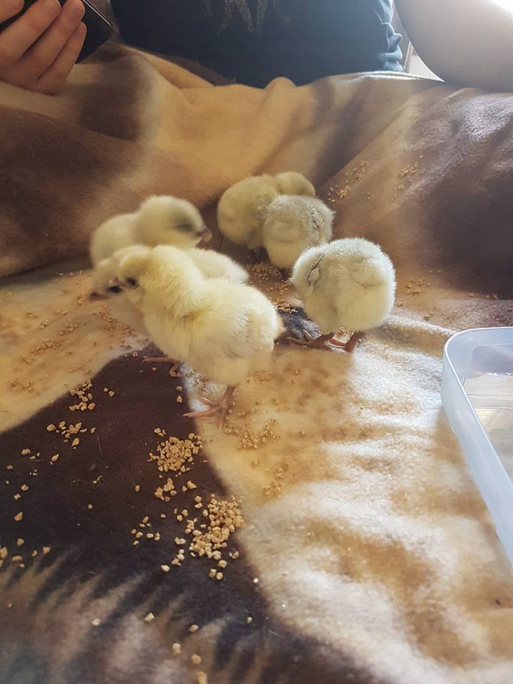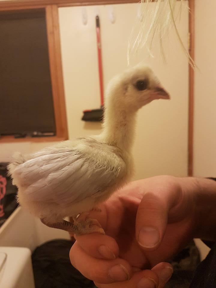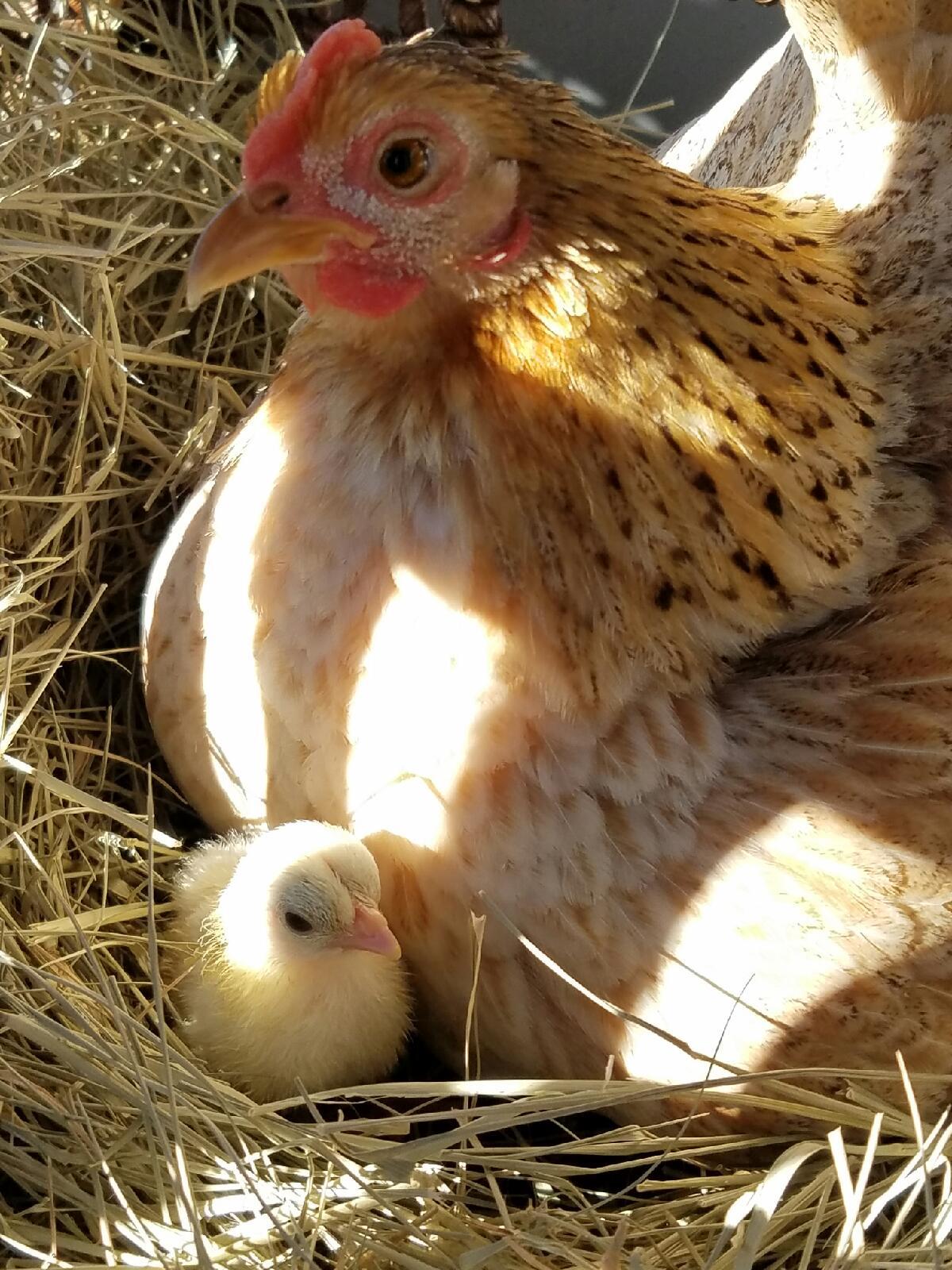 My seramas first little chick. She sat on 4 seramas and 1 chocolate cuckoo bantam orpington and we ended up with all 5 hatching. She's been a great mother hen.