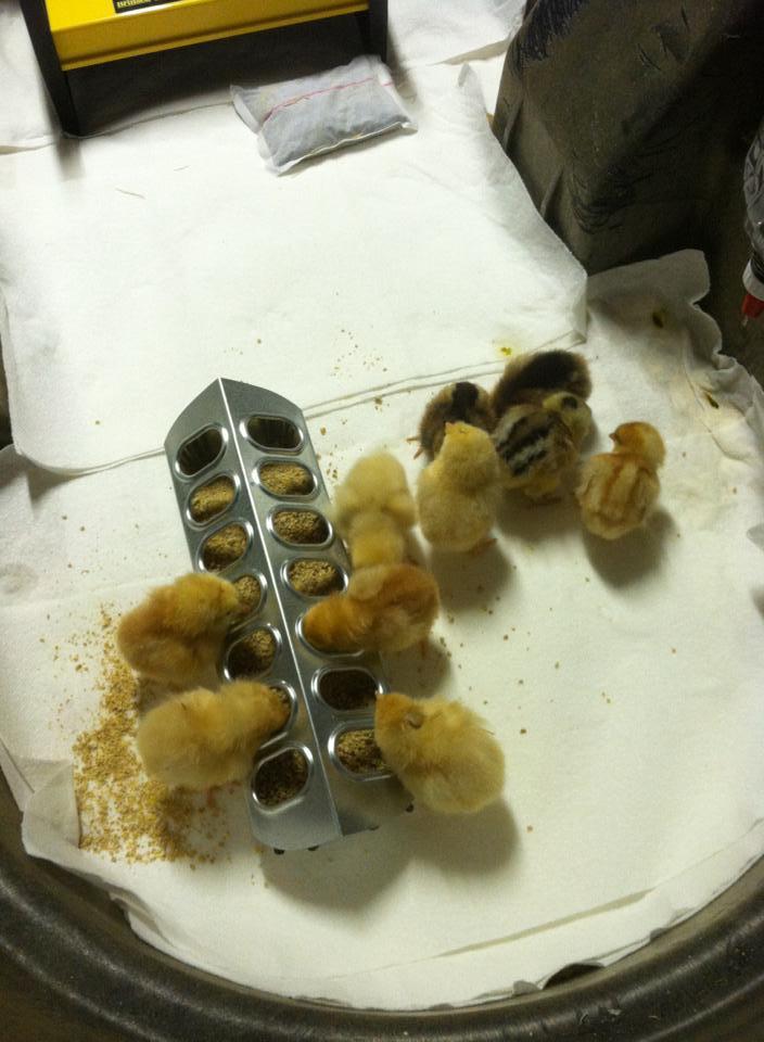 This was their first day in the brooder shortly after I picked them up at the post office.