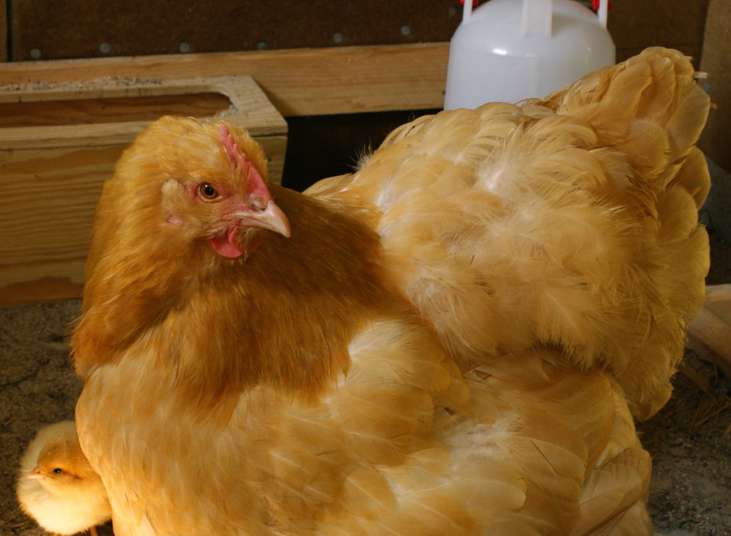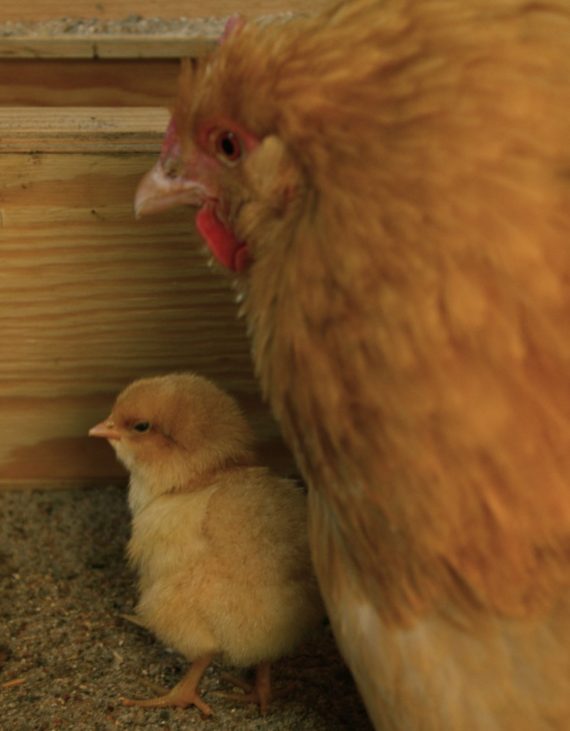 Awh, so precious! Momma really looks like the babiesHere are some pics of our three new arrivals. We've only had chickens (3 hens and a rooster -all Buff Orpingtons) since mid April so this has been an additional exciting learning experience. As this one hen ('Gulon') went broody I decided to slip 3 of her eggs back under her. She has shown herself to be a capably committed egg hatcher. Twenty one days later we have 3 little peepers.