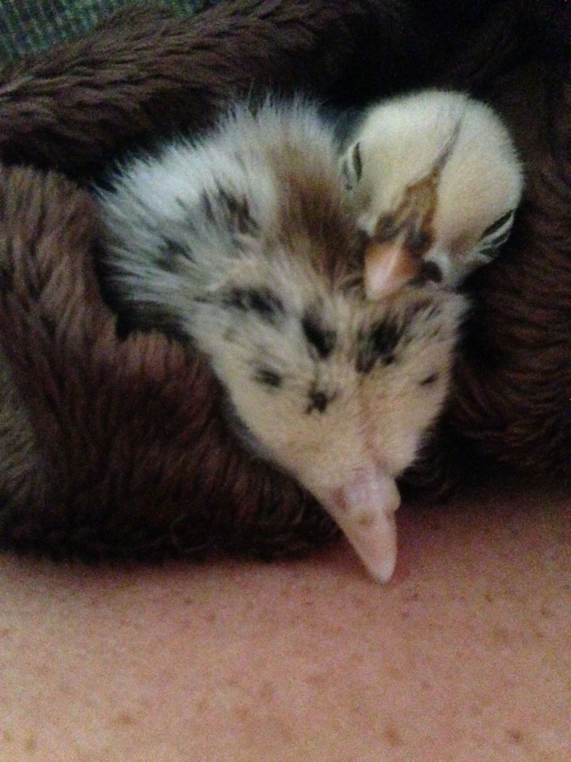 And lastly this is Moki. This is my EE x BR. Daddy was the BR and mommy was the EE. This one has a peacomb and fluffy chicks, but all the coloring of a BR chick. I am so excited to see what this one looks like.