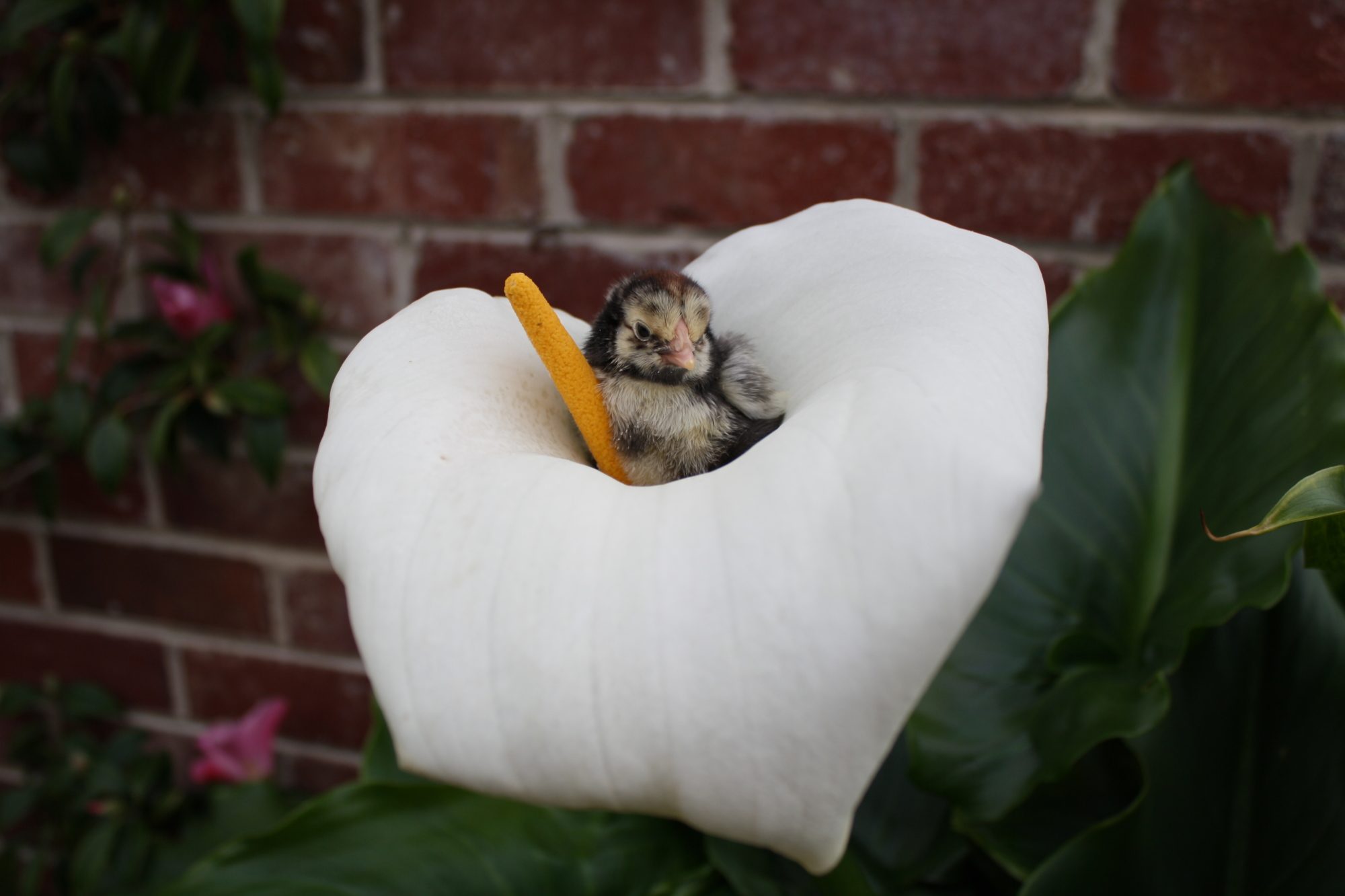 The picture with the chick in the flower is adorable! The flower also looks like a heart.