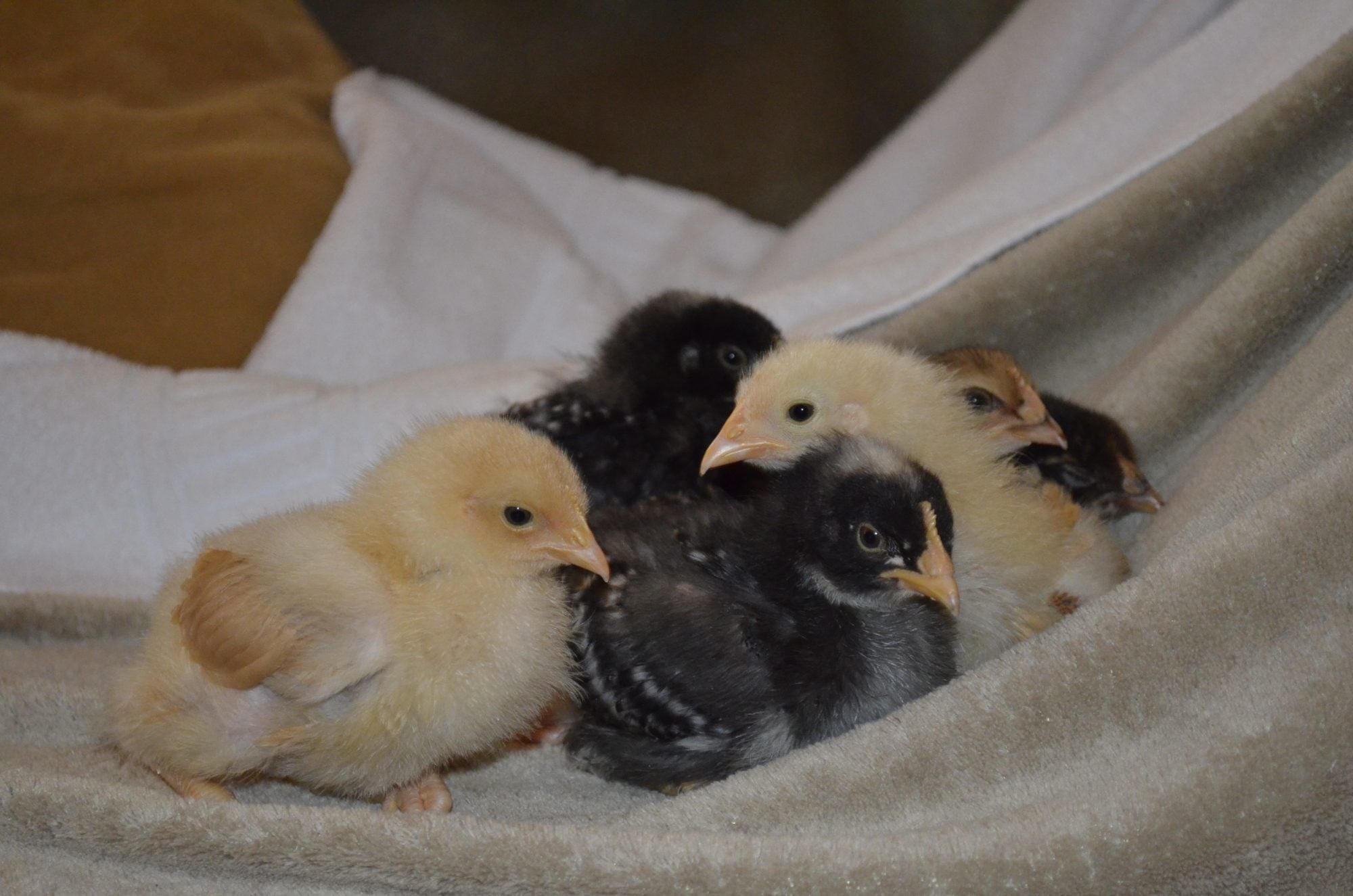 my hurt Welsumer babies. The mom scalped them but I think they will heal.They are beautiful...Introducing Pinky and Brain.![]()