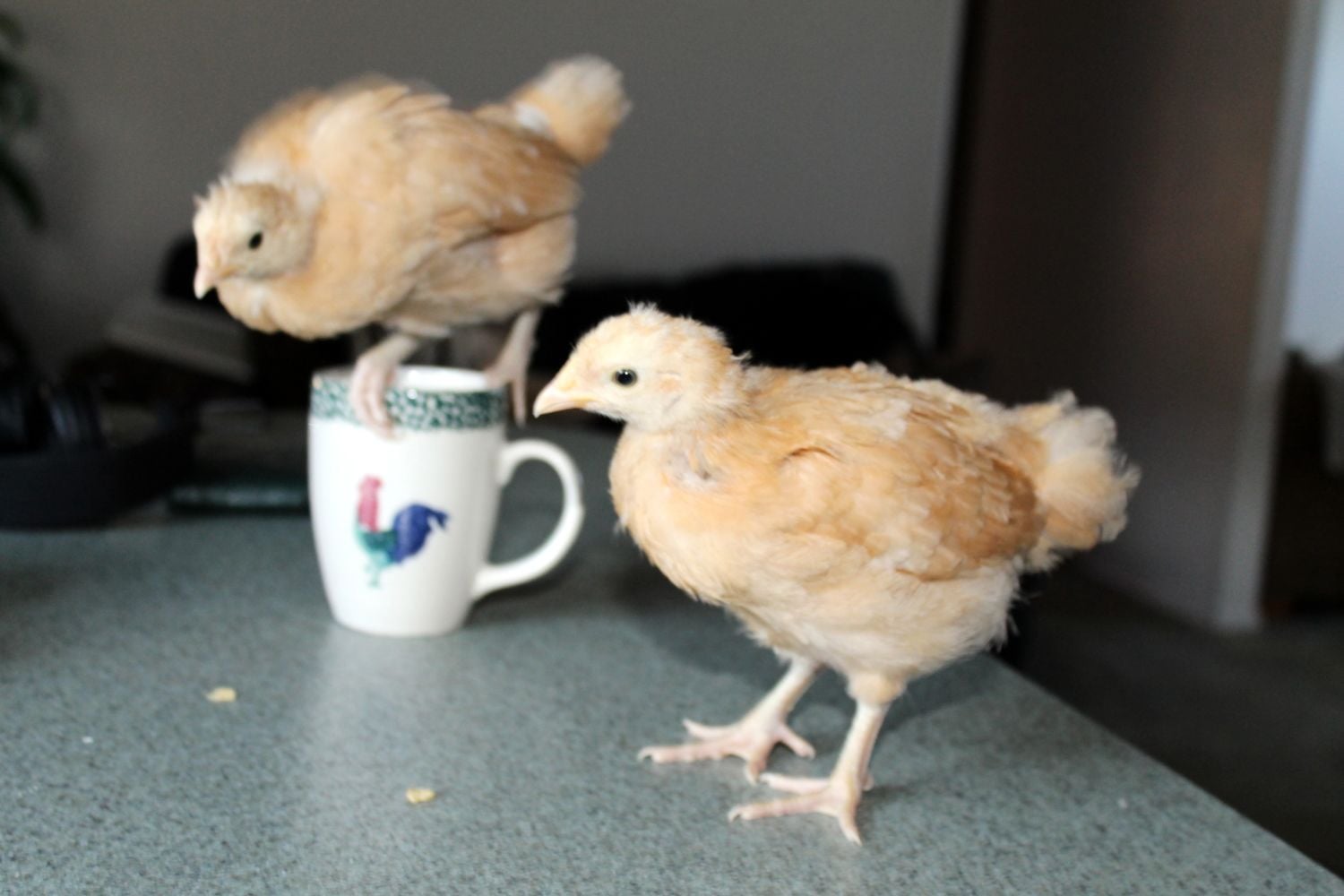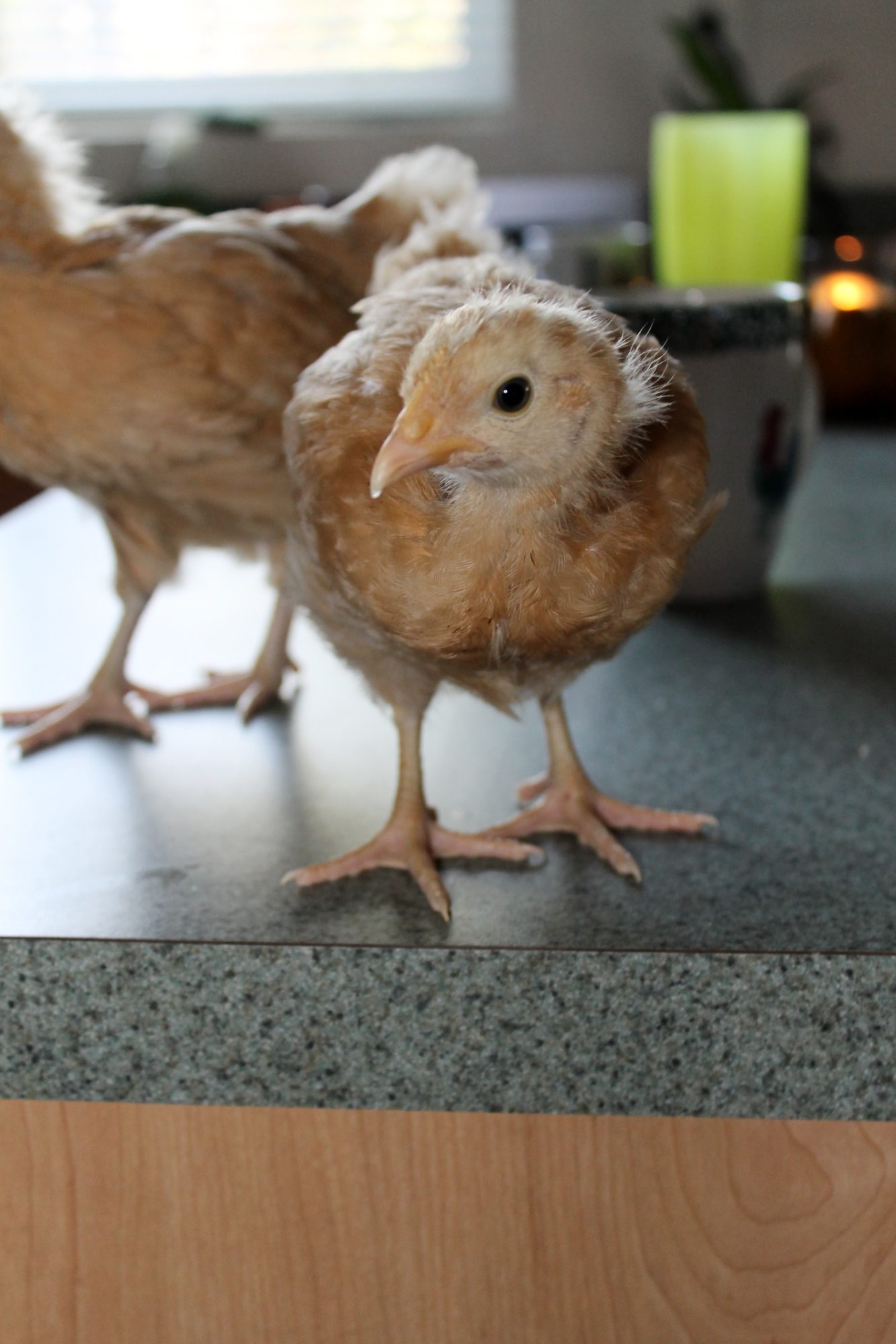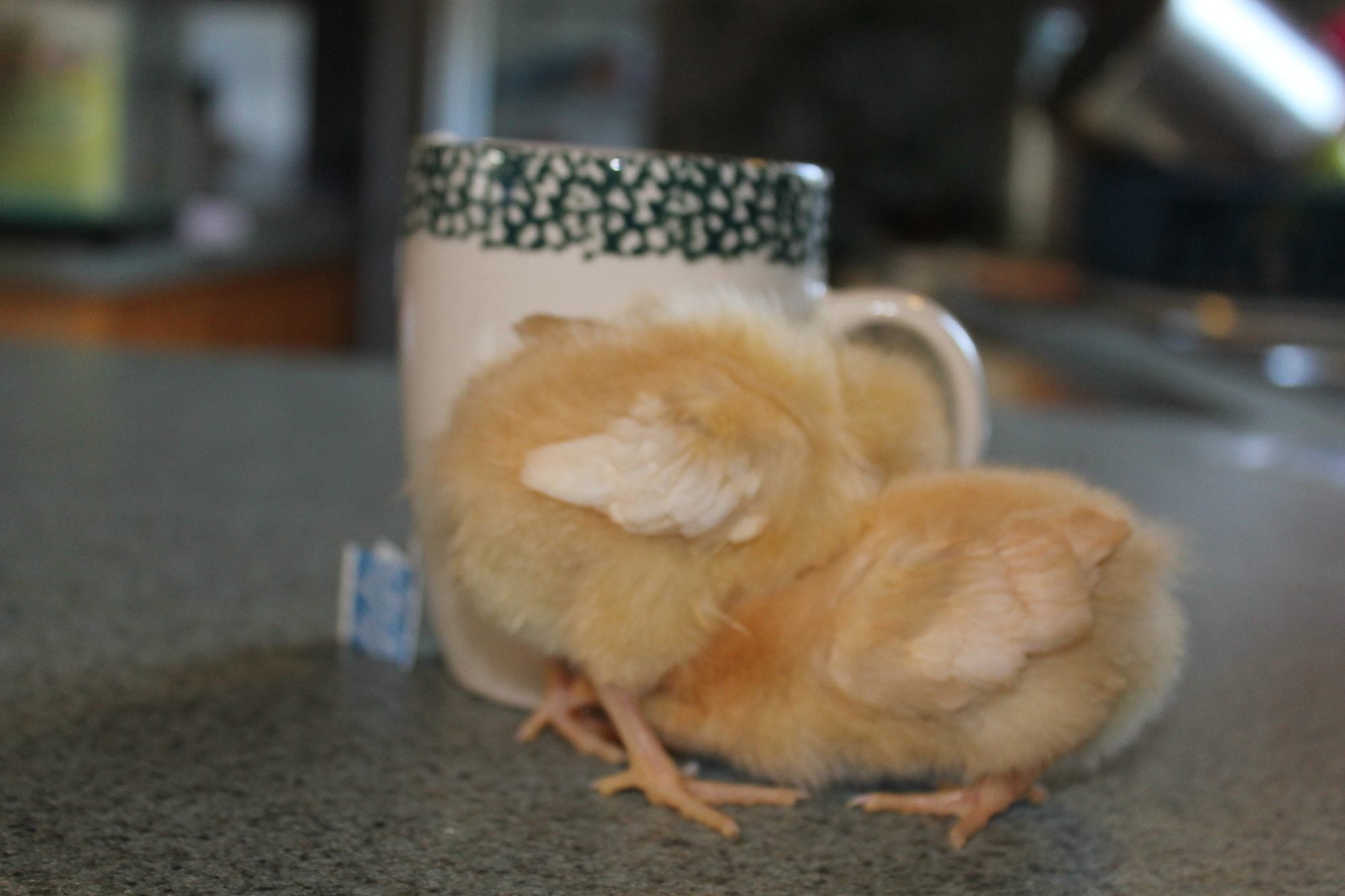 Got the new chicks today. First time for chickens. We said not in the house, it was really cold outside, so they are in the mud room. My son found them a worm they had a blast with it. Dogs are interested, laying there watching. We haven't gotten a thing done today. Son, "we have the smartest chickens ever"! Fun day.