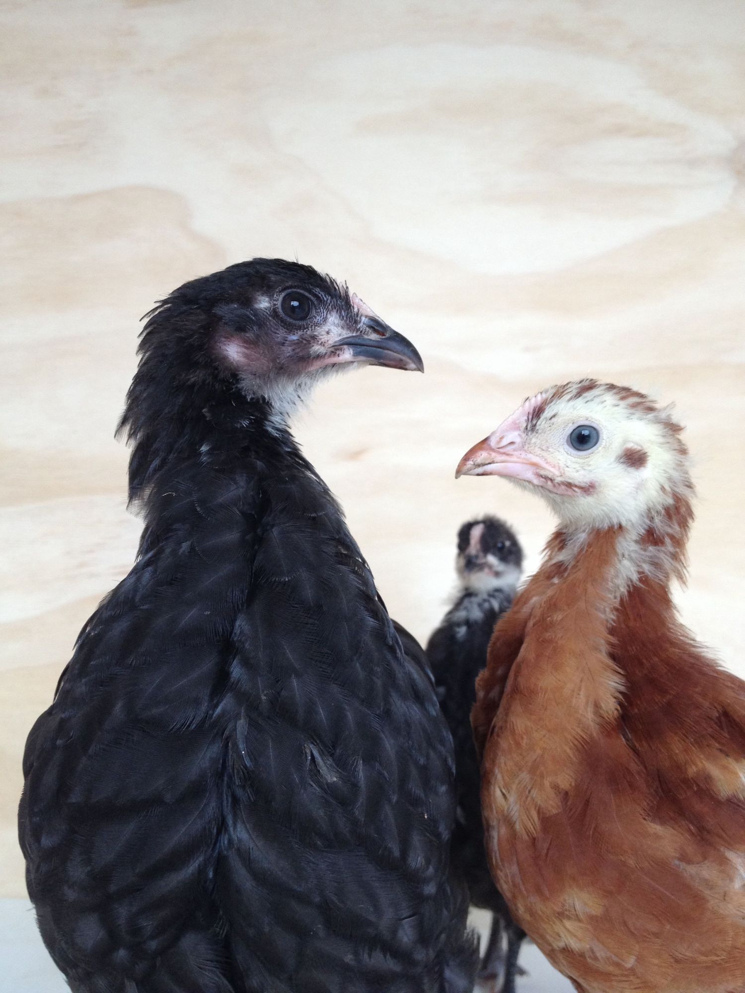 Well before we knew our girl Snow ha died we went and got two RIRs today. About two weeks old. So though my boy cried a LOT of tears over Snow we also have had some amazing giggles over what he calls The Chicken Scarf.