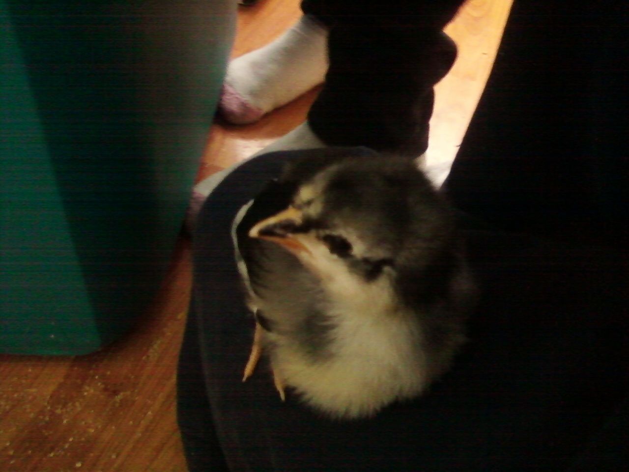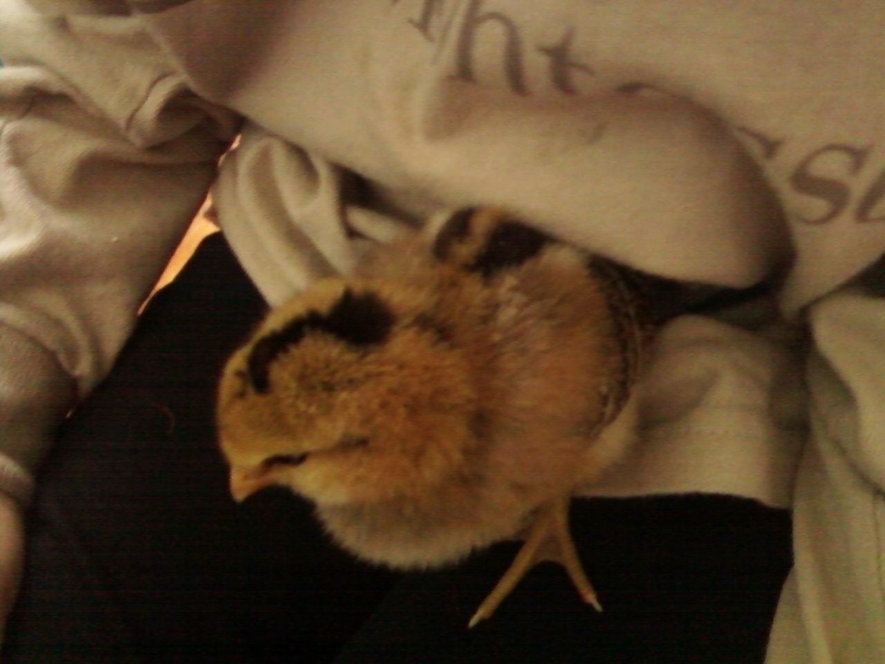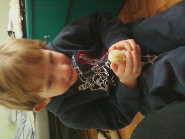 My son with "his" chick, Moonlight.