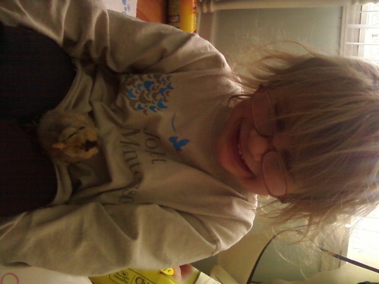 (I don't know how to rotate pictures. sorry) My Daughter with one of the EE's (and her crazy hair)