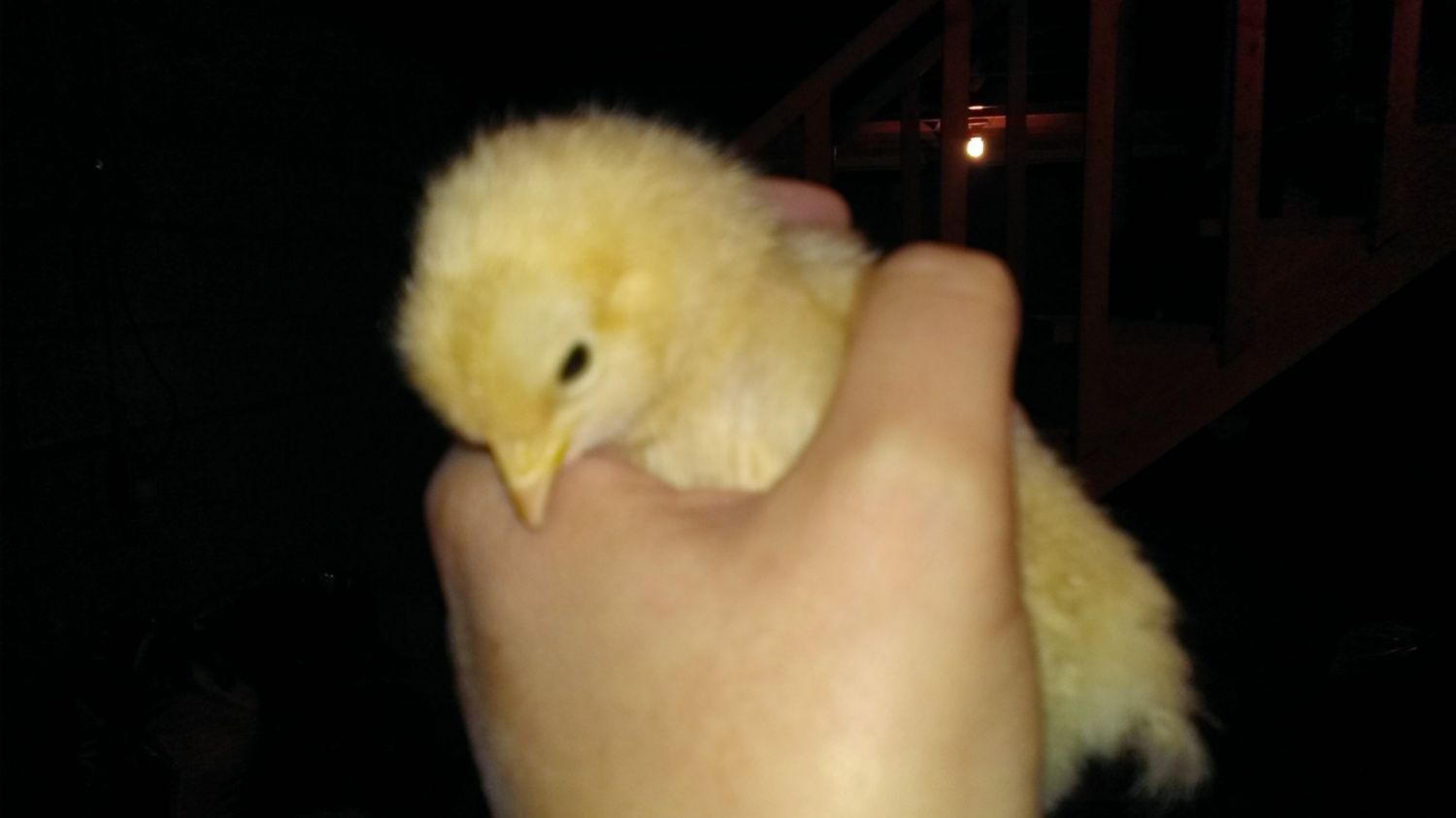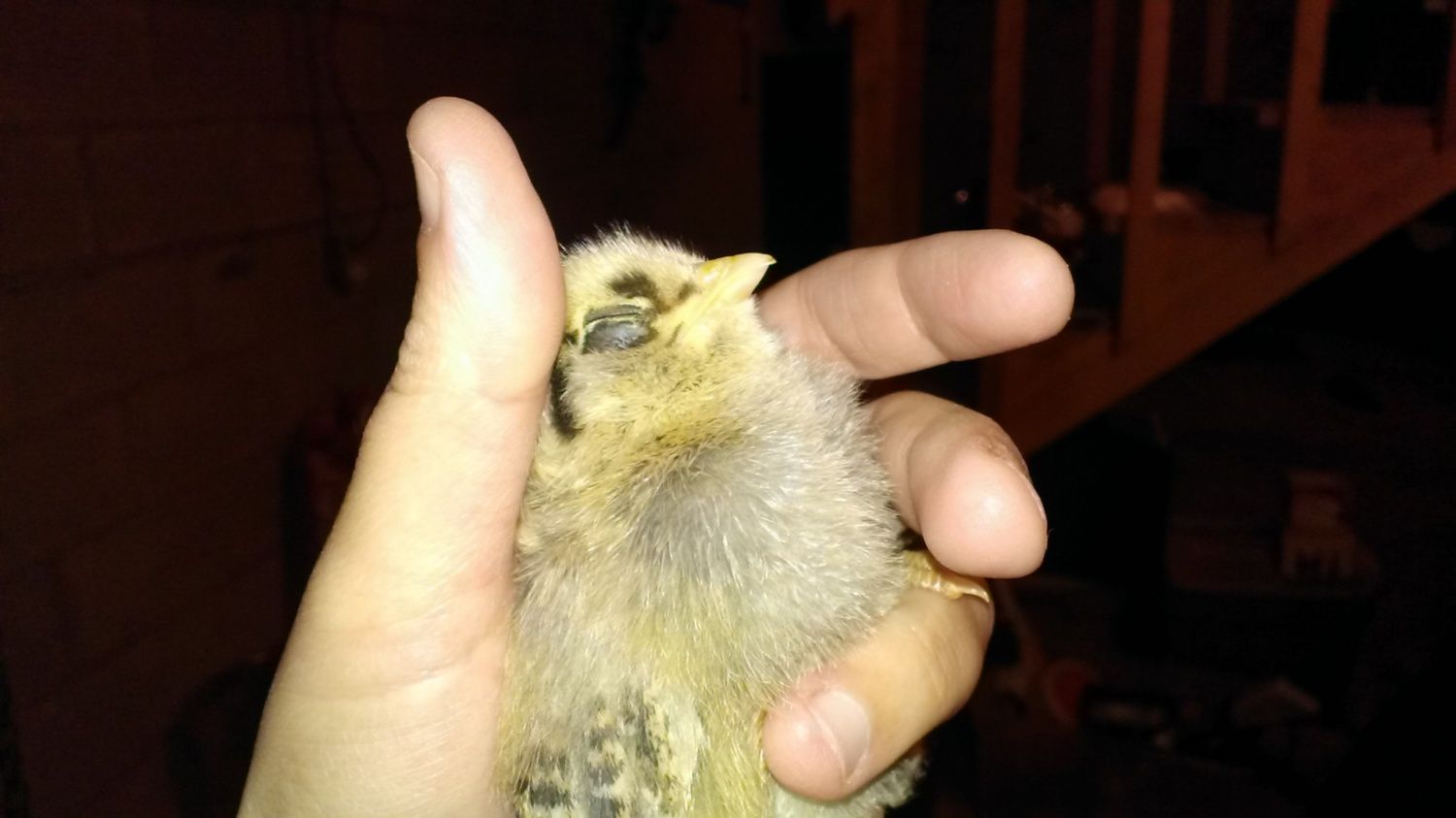 ^^ One of my week-old Ameraucanas (not sure if girl or roo) - sound asleep :)