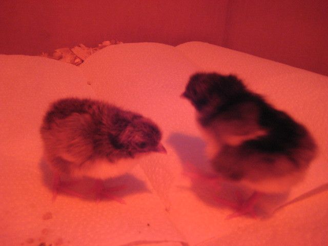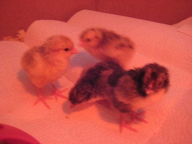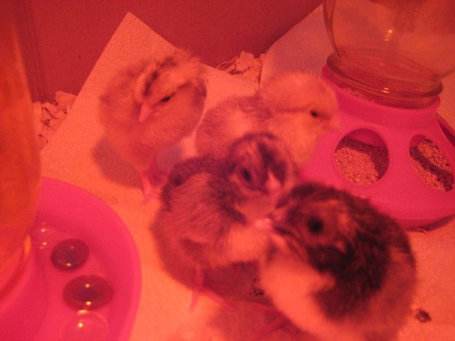 Here's what I've got in my brooder. 4 Swedish Flower Hen chicks. They hatched Wednesday evening and are the cutest little things! I have 2 dark ones and two light ones. 1 unfortunately died during hatching. My daughter buried it in the backyard along with her brother's help. Love these little chicks!