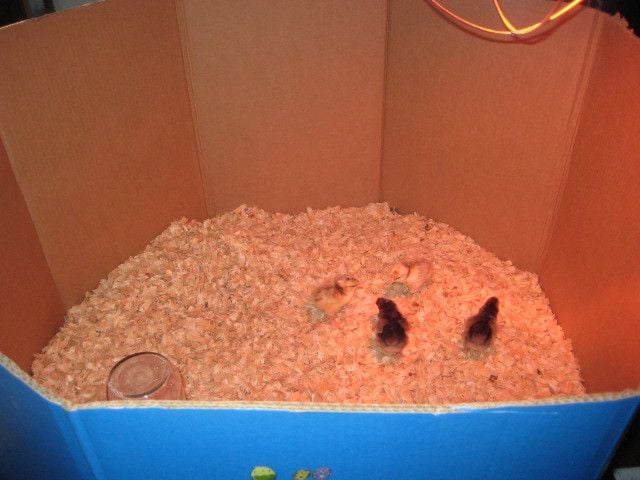 I also scored this cool free brooder from the grocery store that I merchandise magazines in. When I saw them in the store, my first thought was that it would be an awesome chicken brooder ( as compared to a large cardboard box). My 14 year old son says it's the chicken fighting ring. He's a WWE fan. Silly child