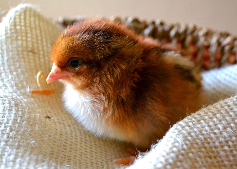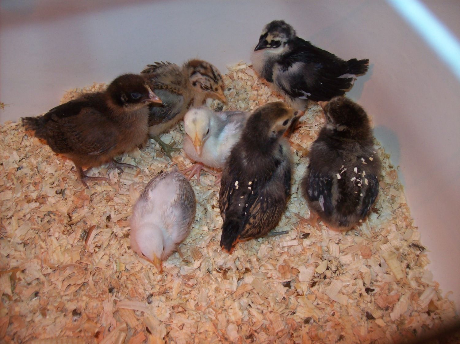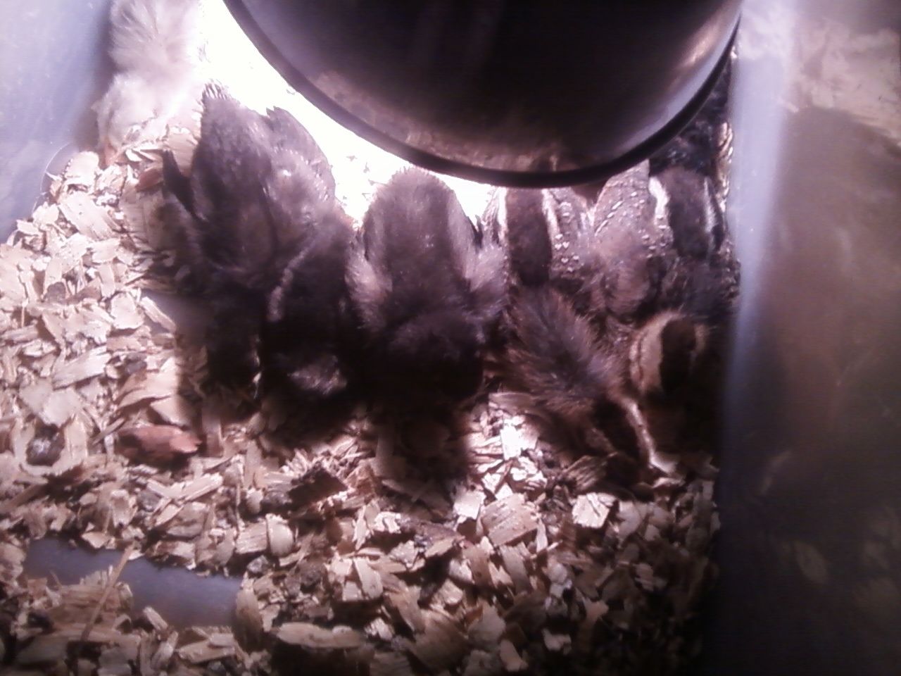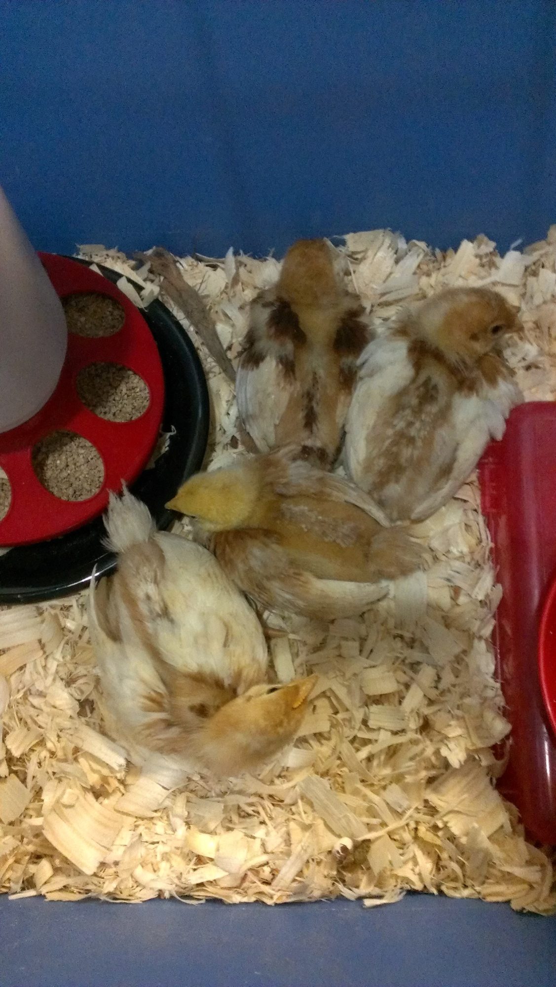 New chicks to the right. Amazing the size difference. They grow so quick!
