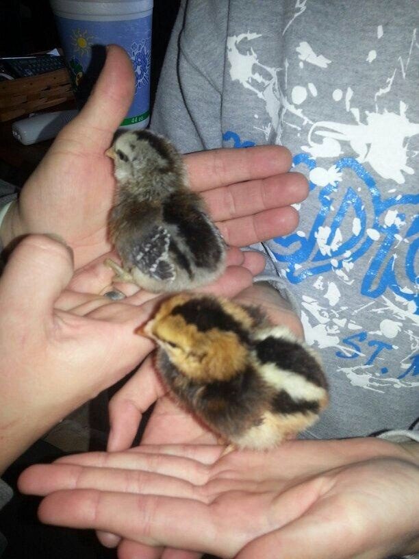 These 2 dolls are my 4 week old Barred Rock's. One is named Zebra and the other is still waiting on a name. We also got them today.