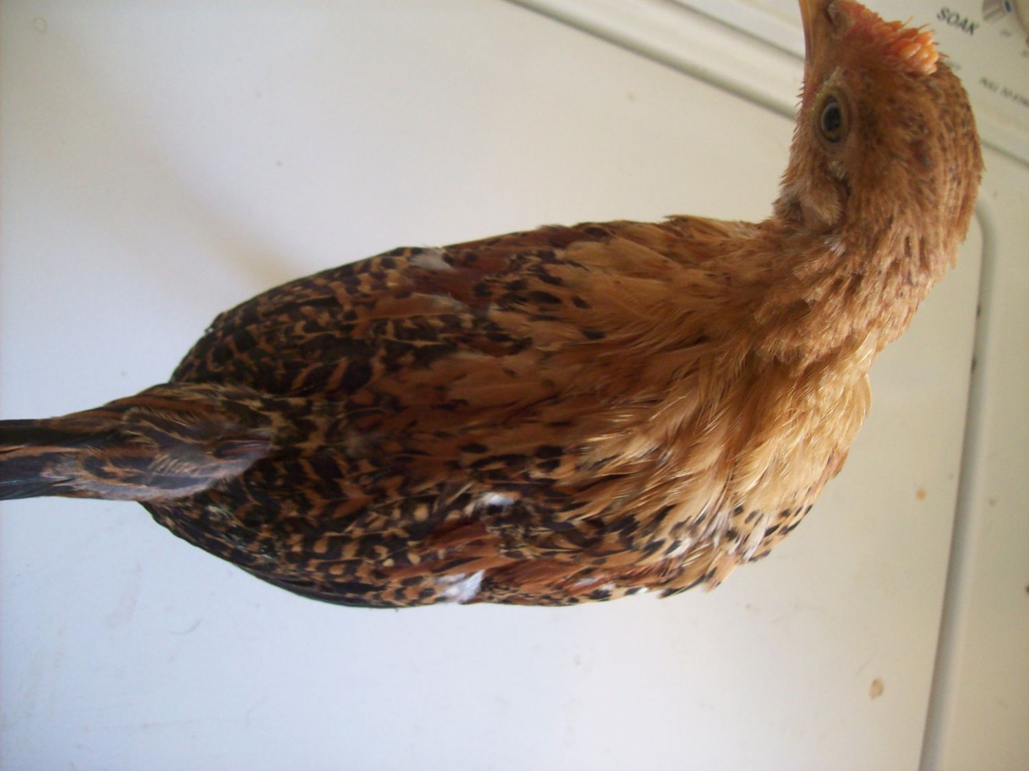 when did she hatch? She's probably still learning how to walk. When chicks hatch, it takes about 2-4 days for them to learn how to eat and drink. Take the chick out and separate it from the others before it gets trampled to death.[COLOR=333333]Hey i know this isn't the right place to post this but i have a really important question and none will answer me. [/COLOR] [COLOR=333333]Hi i have a newborn and she seems to have had an injured foot. i put a bootie on her but she won't walk around or anything and only drinks when i dunk her beak in water. yesterday, i couldn't take it anymore, it looked like it was suffering so i took the booty and spraddle leg bad aid off. she started moving around but not much and still wouldn't eat or drink. She was getting pecked and ran over so now, i put another bootie back on and she is isolated. What should i do? should i cull? it doest really seem too sever i just want[/COLOR] [COLOR=333333]to know how to fix it[/COLOR] [COLOR=333333]this was her yesterday (first 12 hours of her life.[/COLOR] [COLOR=333333].[/COLOR] [COLOR=333333]this is her now, possible a swollen knee?[/COLOR] [COLOR=333333][COLOR=B42000]