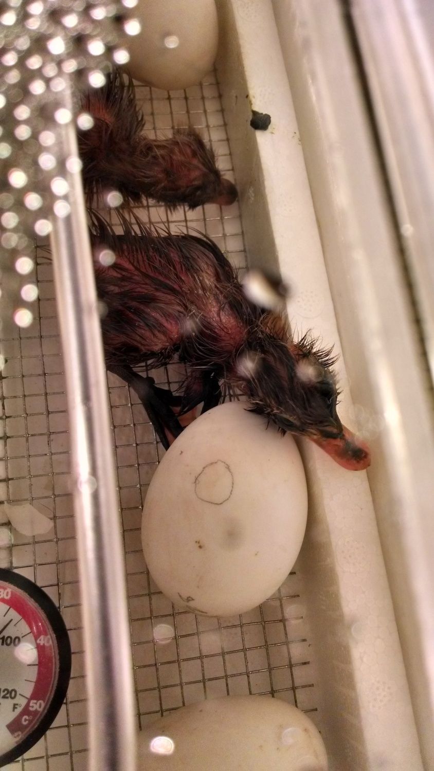 It's called a naked neck or turken! They go their whole life with no feathers on their necks!Is that one chick missing the hair/fuzz around its neck ?