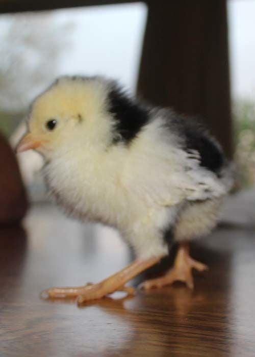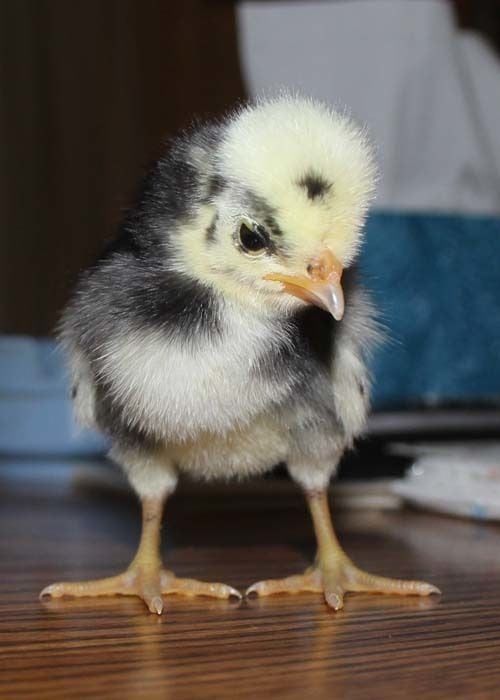 My new babies arrived today! I have no idea what any of them are, though I think three are some type of Polish judging by the bouffant down caps. Suggestions are welcome! Possible breeds include: Ancona, Easter Egger, Andalusian, Wyandotte, Dark Cornish, Delaware, Dominique, Jersey Giant, Brahma, Partridge Rock, Light Brown Leghorn, Hamburg, Sussex, German Spitzhauben Appenzeller, Buckeye, Sumatra, Cochin, Polish, Marans, Campine, Lakenvelder, Faverolles, Buttercup, Welsummer, Exchequer Leghorn, Sultan, Penedesenca, Ameraucana, Blue and Lavender Orpington largest. Maybe an Orp? side front back smallest, and weakest. Poor little girl!