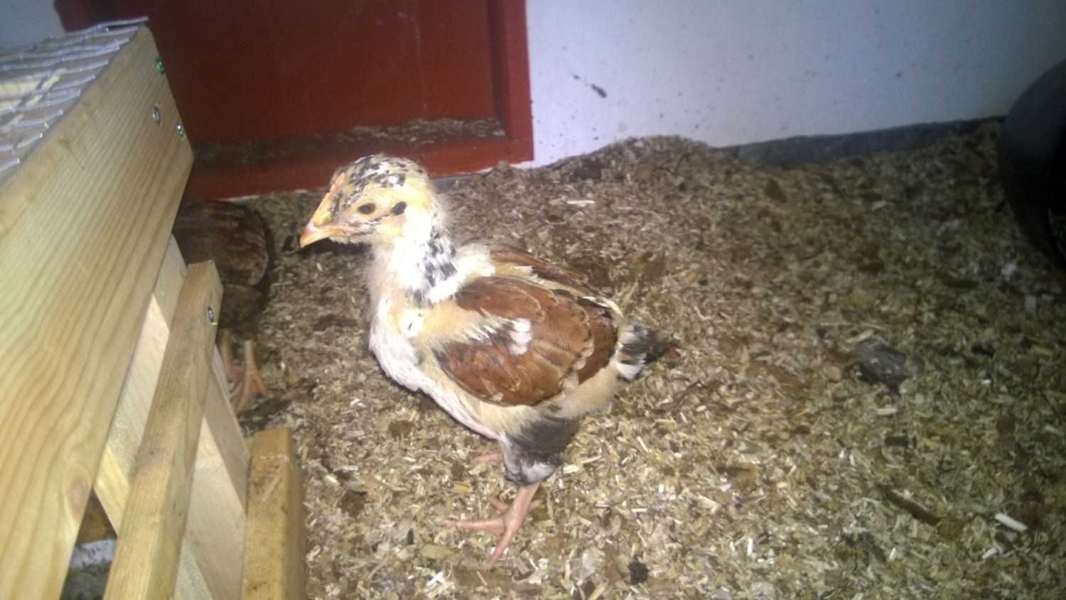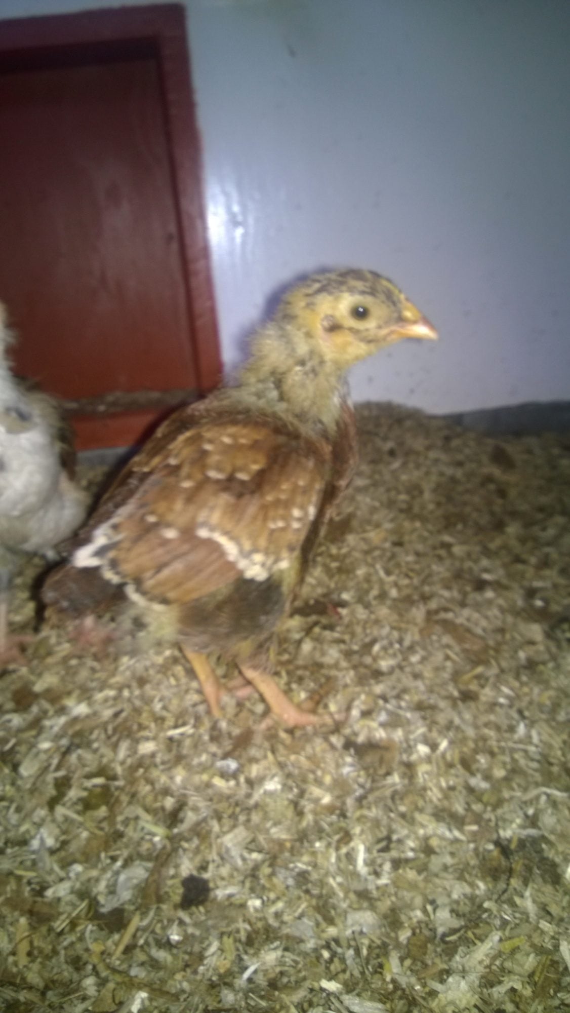 He's a bit of a baby, likes to climb up on our shoulders. We only have the two 5 week old's, the rest of the flock are 8 weeks, so he has a bit of a disadvantage in size, not really challenging the bigger ones. He's really nice to the other Sussex though. They usually keep together. I did find a long feather in the pot we put in for them (They like to huddle up in there, they can't really get up to the big roosts yet), so I don't know if he had pulled it out of one of the bigger ones or what had happened. But he certainly is a lot braver than the other one.
