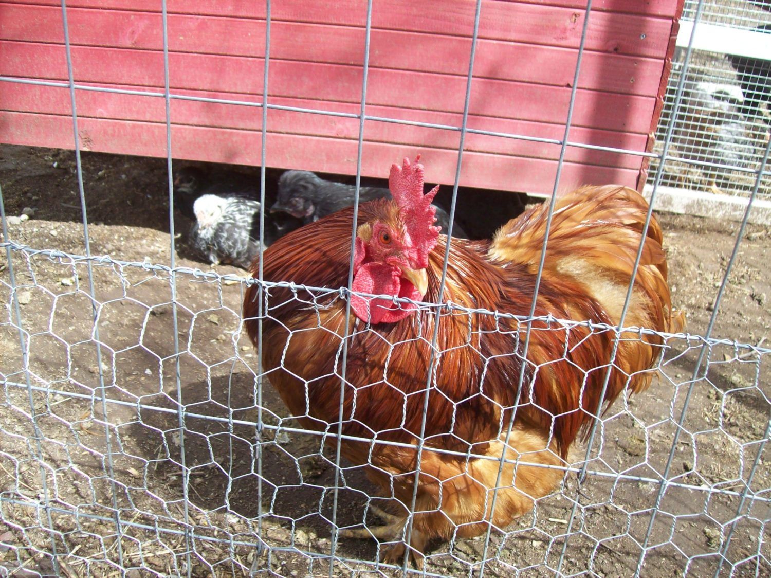 They're doing well with the 20 older chickens, but technically it's only the 14 five month old pullets they have to deal with (the one cockerel is in solitary, since he seeks out the babies to attack them; he will be rehomed with a few pullets once the pullets start laying). So the babies have them outnumbered 17 to 14. The five adults (one year olds) don't really care about the babies and pretty much ignore them, as Leon demonstrates here...