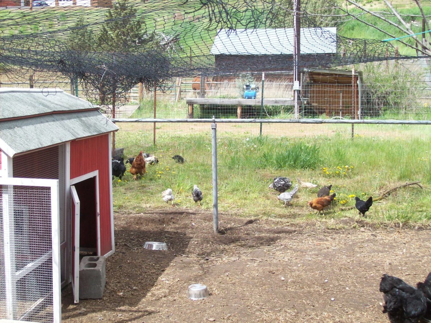 Sunbathing by the little red coop that serves no real purpose, except maybe cover from rain and shade when it gets hot.