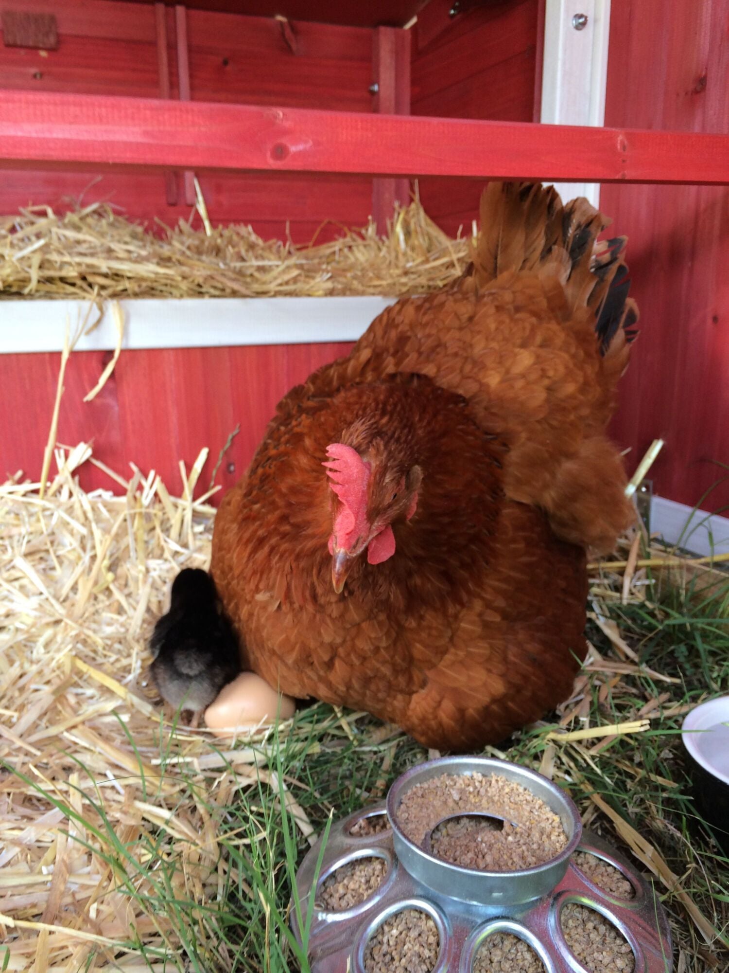 I have a salmon faverolle hen that does that now. Although i think think she might do it so nobody else can get anything to eat. Lol. When i toss out their corn she goes and just plops down in the center of the biggest pile and strikes the sunbathing chicken pose and then eats her fill of what is under and near her.